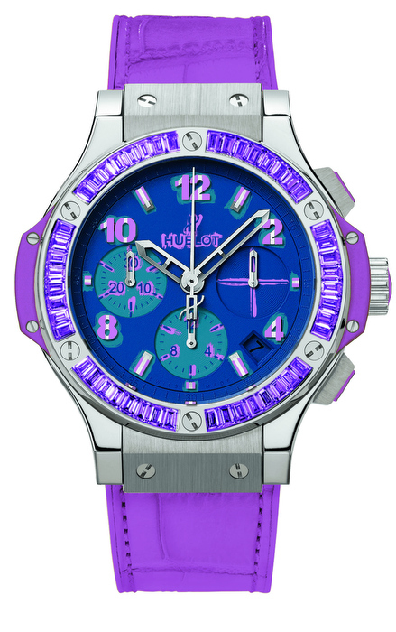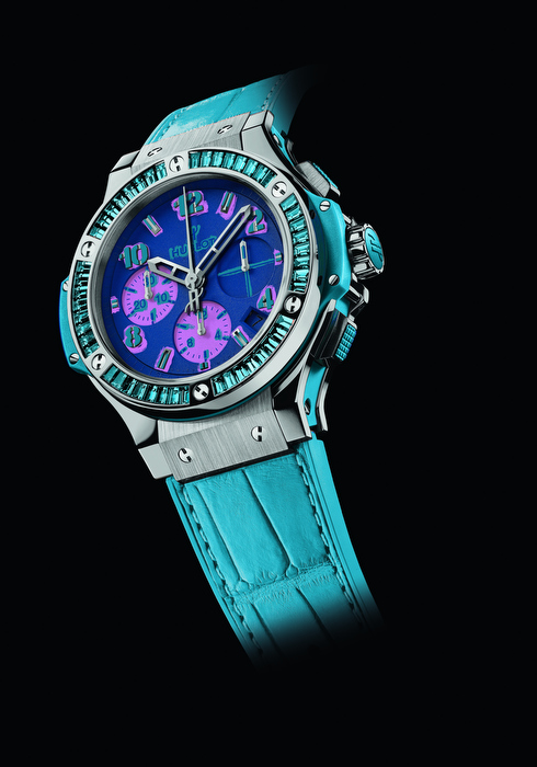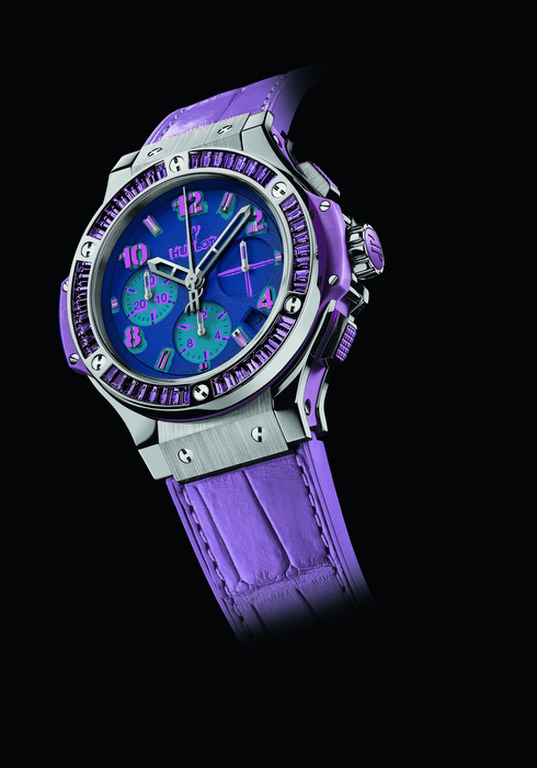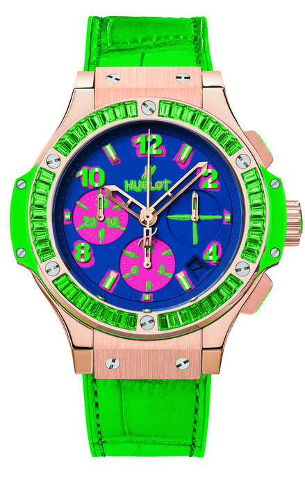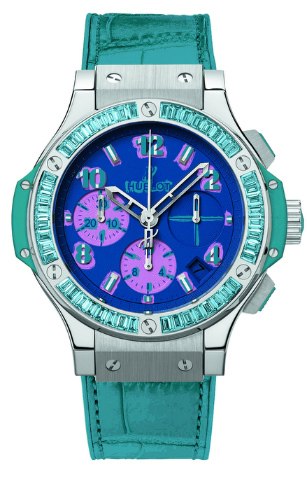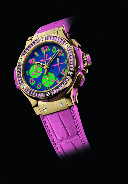 Pues bien, ahora Hublot se inspira en él dando origen a una pieza divertida y osada. Rosa, azul, violeta, verde manzana: una explosión de colores para cuatro relojes, cuatro reinterpretaciones 100% Pop Art. Algo nunca visto en el universo de la alta relojería.