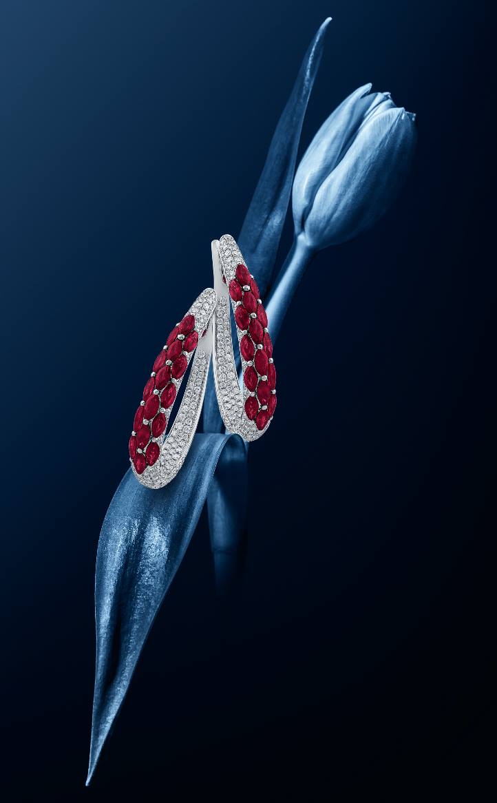 Por otro lado, las perlas, símbolo de la elegancia y perfección; los rubíes catalogados como las piedras representativas del fuego y la pasión; y la pureza cristalina de las esmeraldas, son los elementos claves que engrandecen a esta colección dedicada al amor, Bloom of Love.