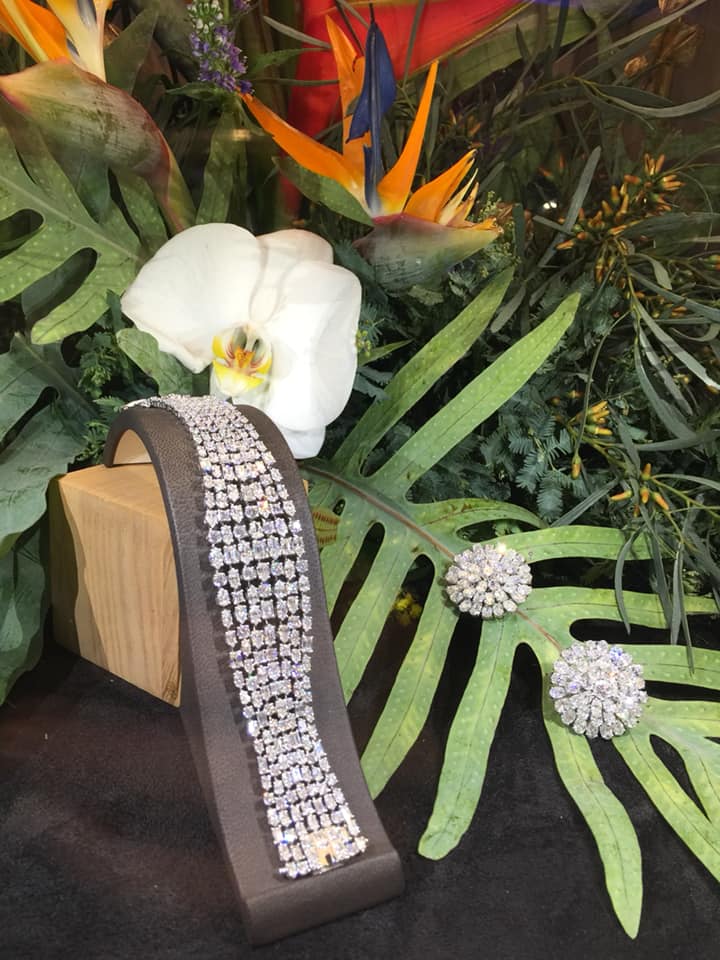 Anillos con diamantes corte esmeralda y ónix en oro blanco; collares con diamantes princess, marquis y corte completo en oro blanco; aretes de flor con diamantes fancy yellow, rose cut y brillantes en oro blanco; pulseras con diamantes marquis, baguette, gota, esmeralda y brillantes en oro blanco son algunos de los accesorios que robarán el corazón de cualquier dama.