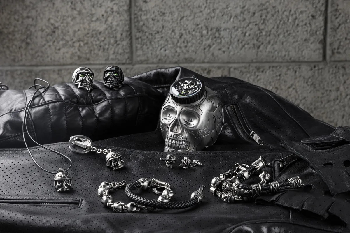 Este pasado Baselworld, Bomberg nos presentó diferentes piezas de joyería de última creación, se trata del Skully Rider Steel I, el Skully Rider Steel II y el Skully Rider Black, que están hechos de acero inoxidable con recubrimiento PVD negro. La idea general parte del diseñador Cory Brindson, quien colabora con la marca desde este mismo año.