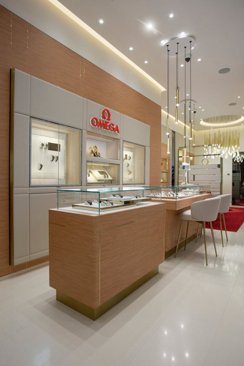 Mobiliario traído directamente de Suiza, iluminación de impresionante diseño, así como los gráficos y materiales más avanzados de la casa, enmarcan ahora sus cuatro colecciones: Constellation, Speedmaster, Seamaster y De Ville.