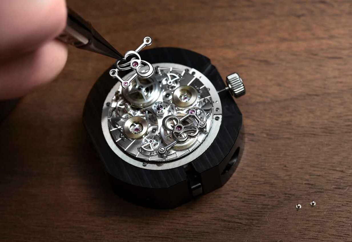 - Movimiento: mecánico de carga manual con doble tourbillon
