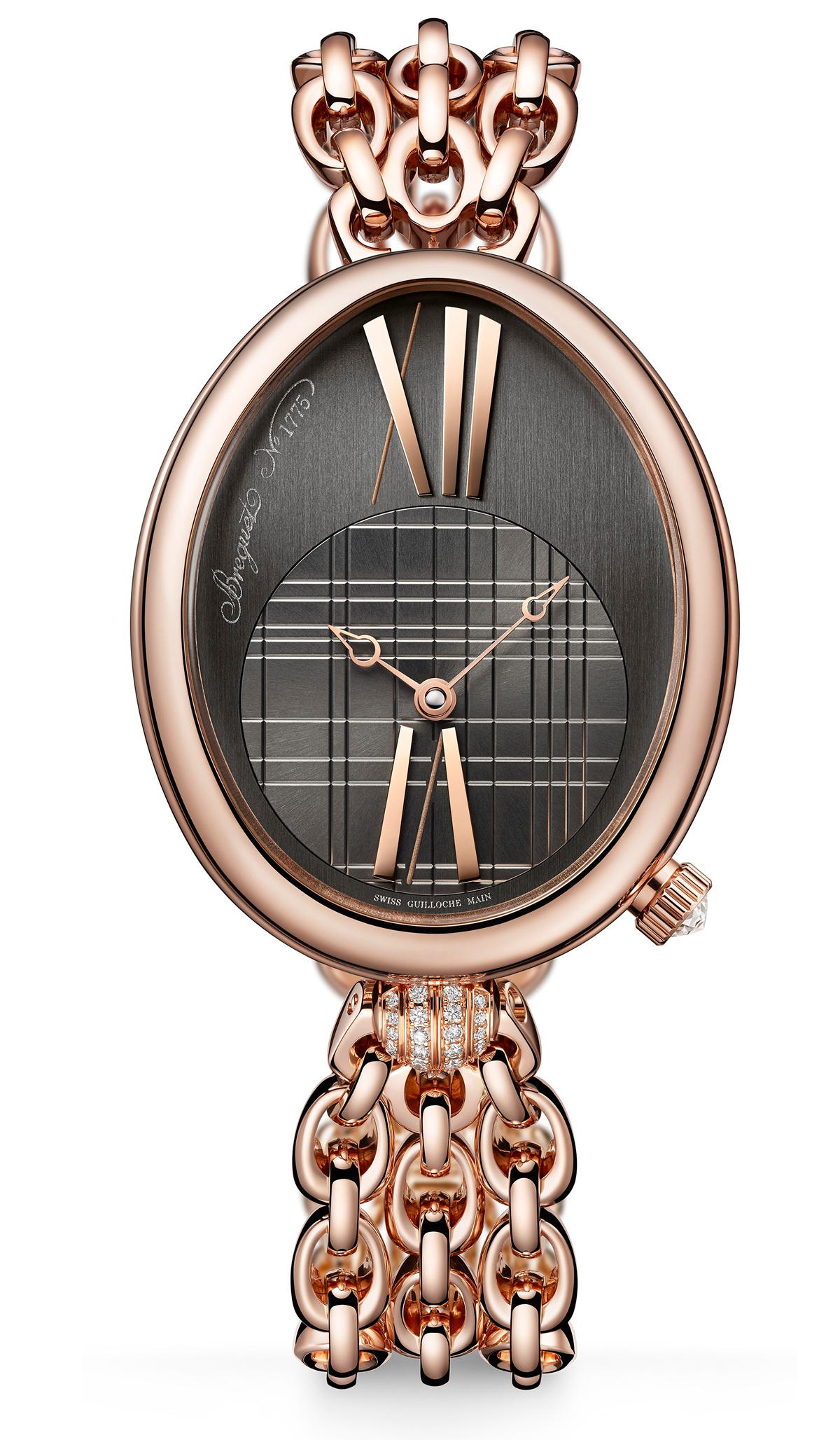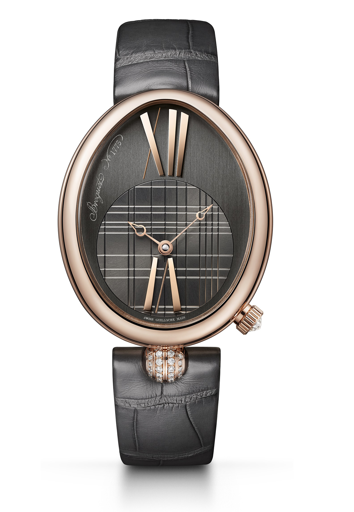Con la adquisición de treinta y cuatro relojes de sobremesa y de pulsera entre 1808 y 1814, la reina de Nápoles, mujer ambiciosa y sumamente bella, ocupó sin dificultades un puesto de honor entre los clientes más distinguidos de Breguet. La colección Reine de Naples está inspirada por un antiguo reloj de brazalete que A.-L. Breguet creó para la hermana de Bonaparte, Carolina, reina de Nápoles.