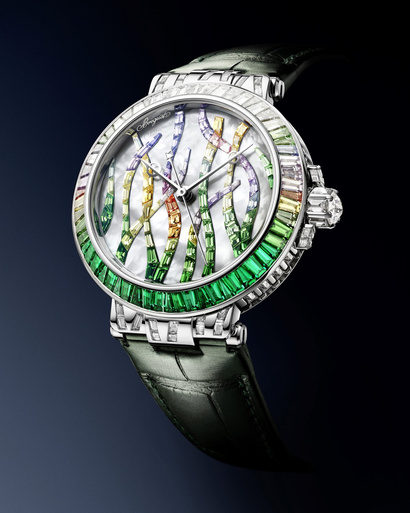 Breguet Marine Poseidonia es, en esencia, el lado femenino del mar, y de la colección histórica de la Maison. Se trata de un lanzamiento mundial en donde se incluye el increíble savoir faire de alta joyería en una pieza Marine destinada a las damas; colección ligada a destacar y rendir homenaje a la belleza del mar.