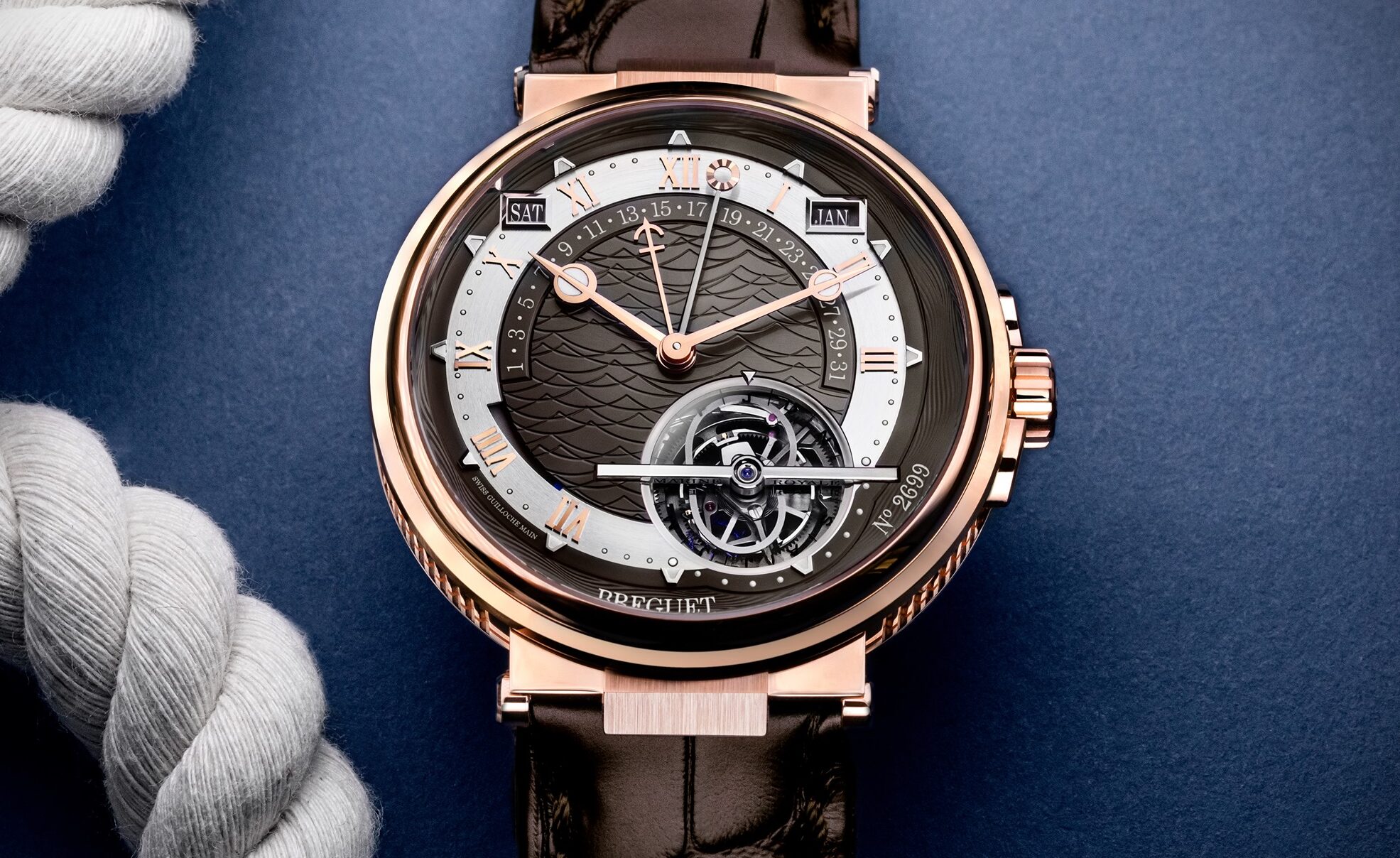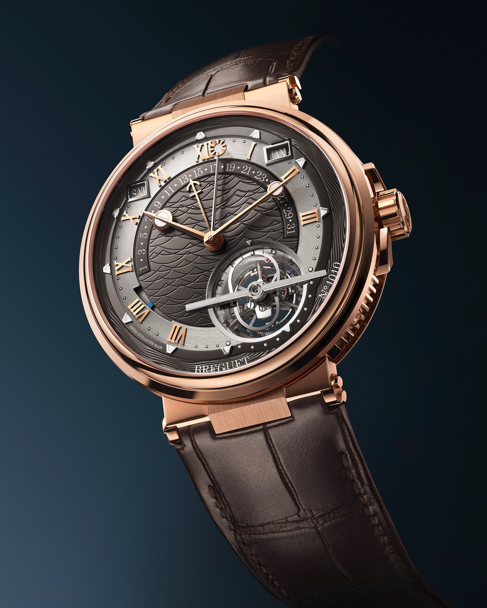 Breguet Marine Tourbillon Équation Marchante 5887 regresa a las listas de popularidad con su nuevo sencillo: caja de oro rosa y carátula color pizarra.