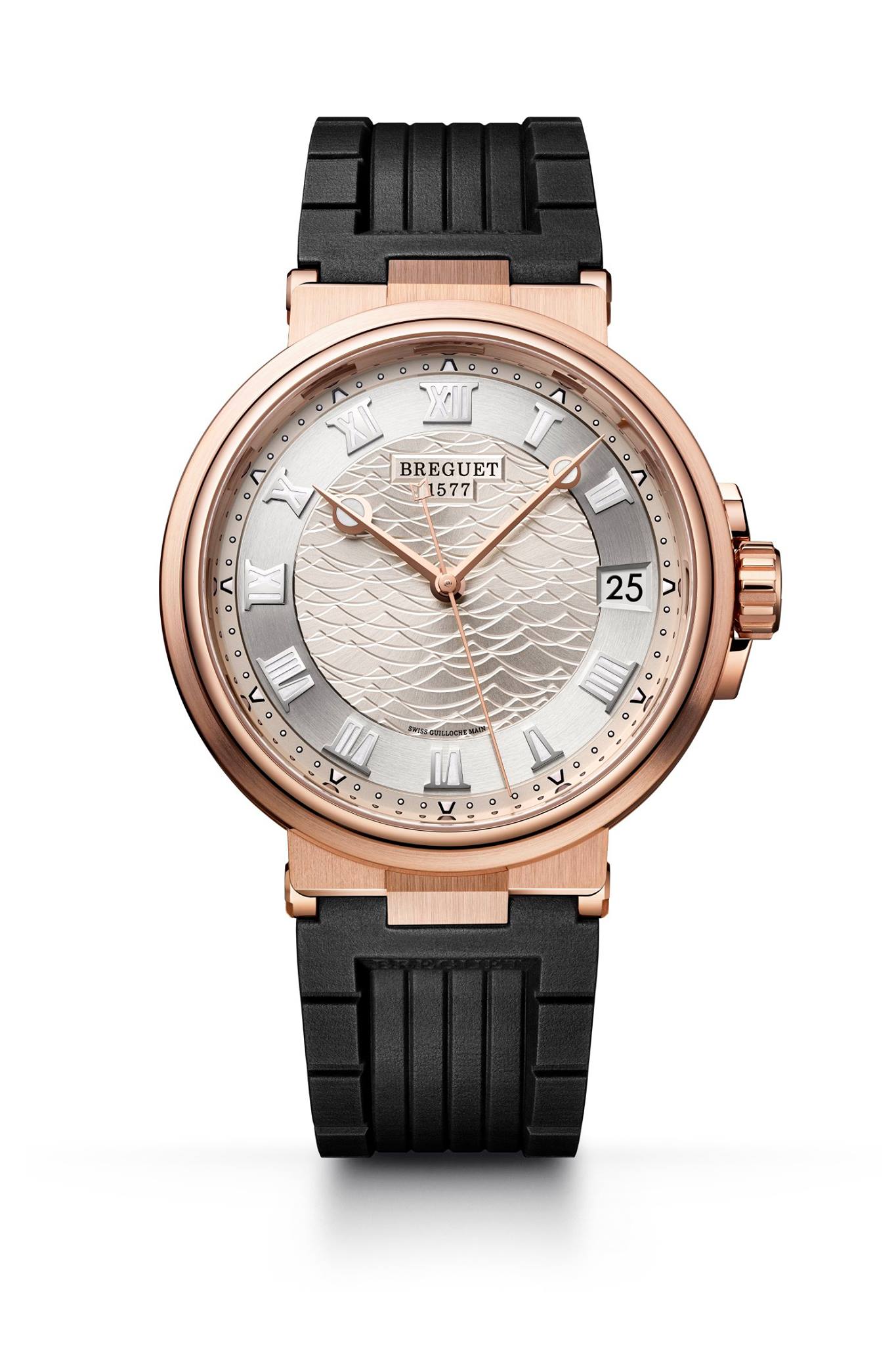 En 2017, Breguet se propuso renovar su línea Marine con un estilo estético que aunara la modernidad con el dinamismo: un cierre de brazalete inédito, unas acanaladuras aún más elaboradas y una corona decorada con el oleaje a su alrededor y con una gran «B».