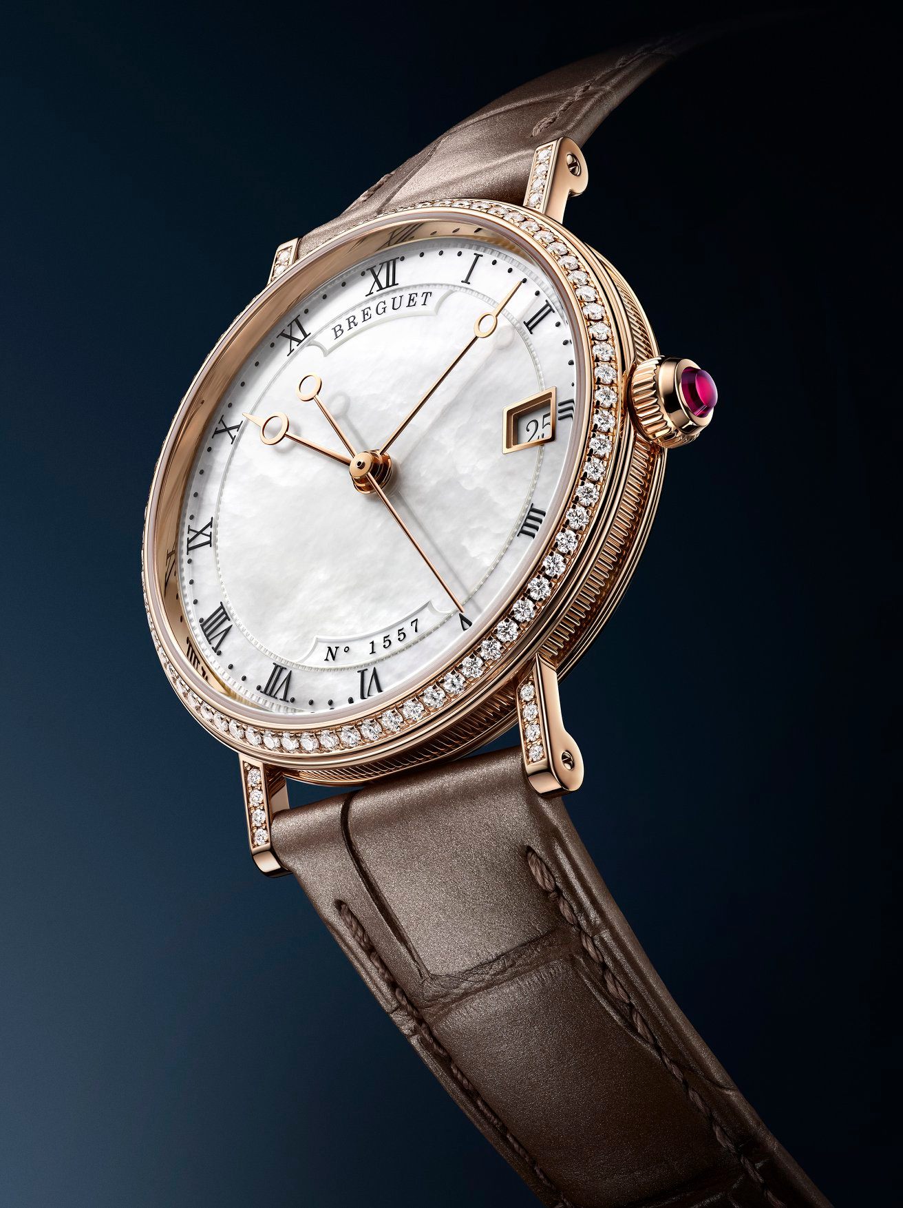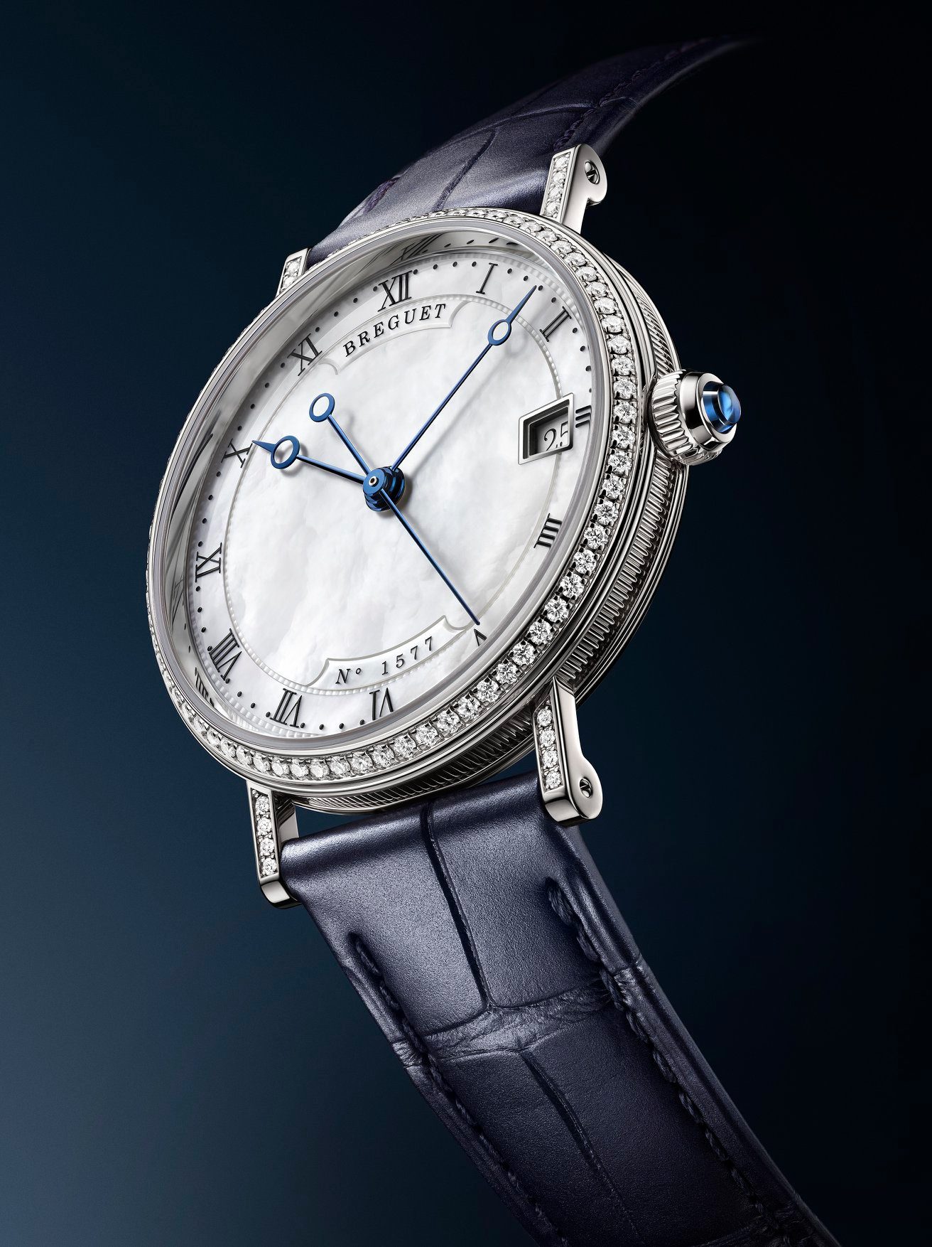Presentado por primera vez con una carátula de nácar natural, destacan los códigos del arte relojero de Breguet. Abraham-Louis Breguet se estableció en París en1775. En contraste con el estilo barroco entonces en boga, la sobriedad de sus creaciones sorprendió y gustó.
