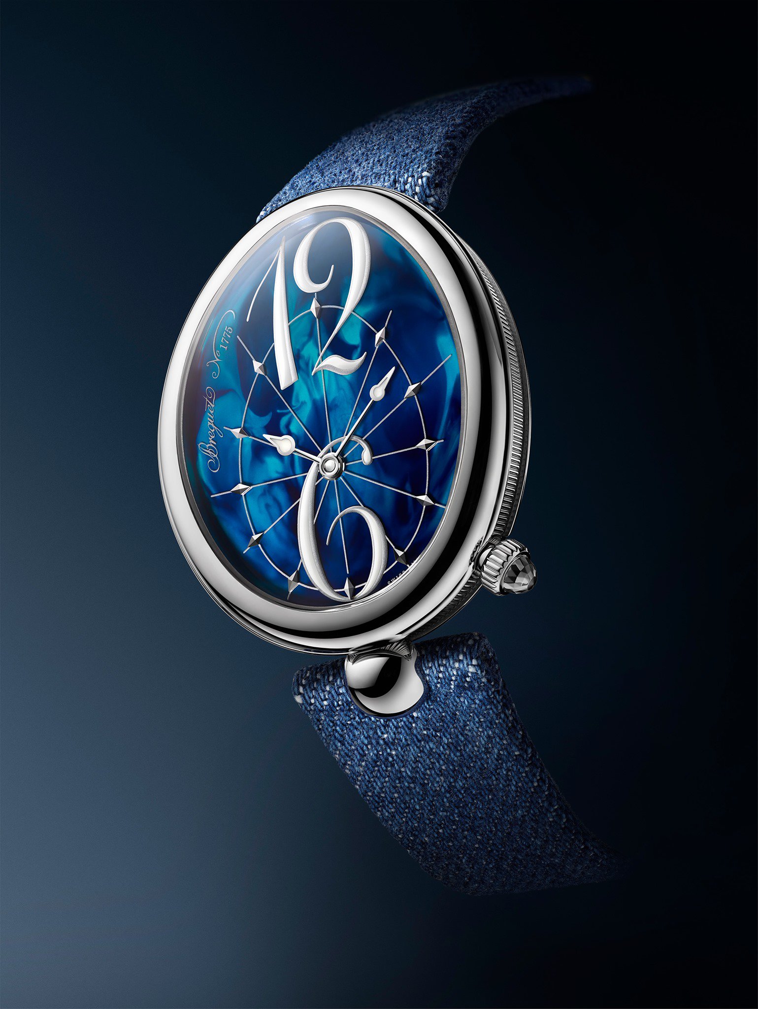 Este año, las agujas azuladas que habitan en la carátula añaden un esmalte grand feu que deja en claro quién es el “príncipe azul” de la Alta Relojería.
