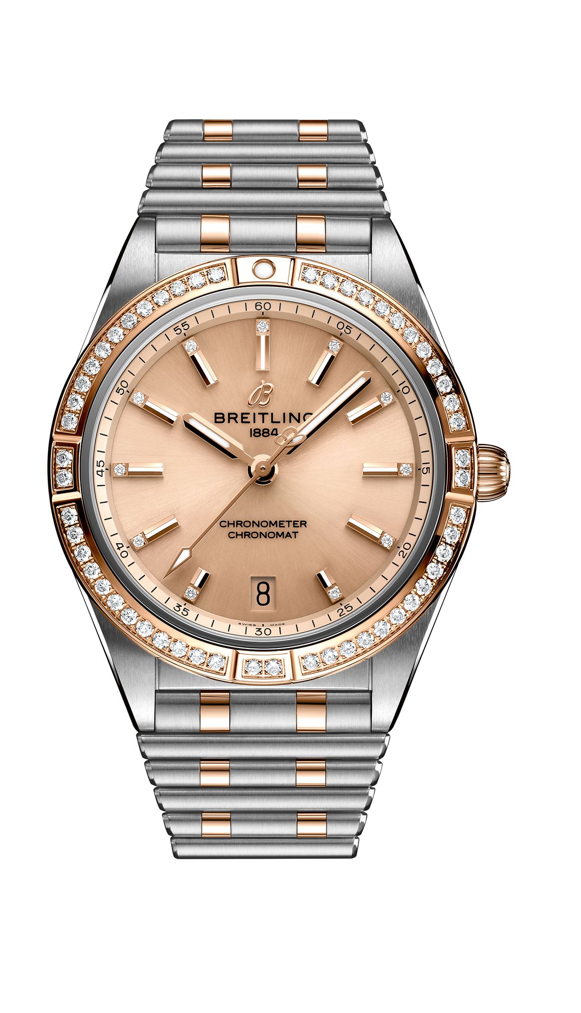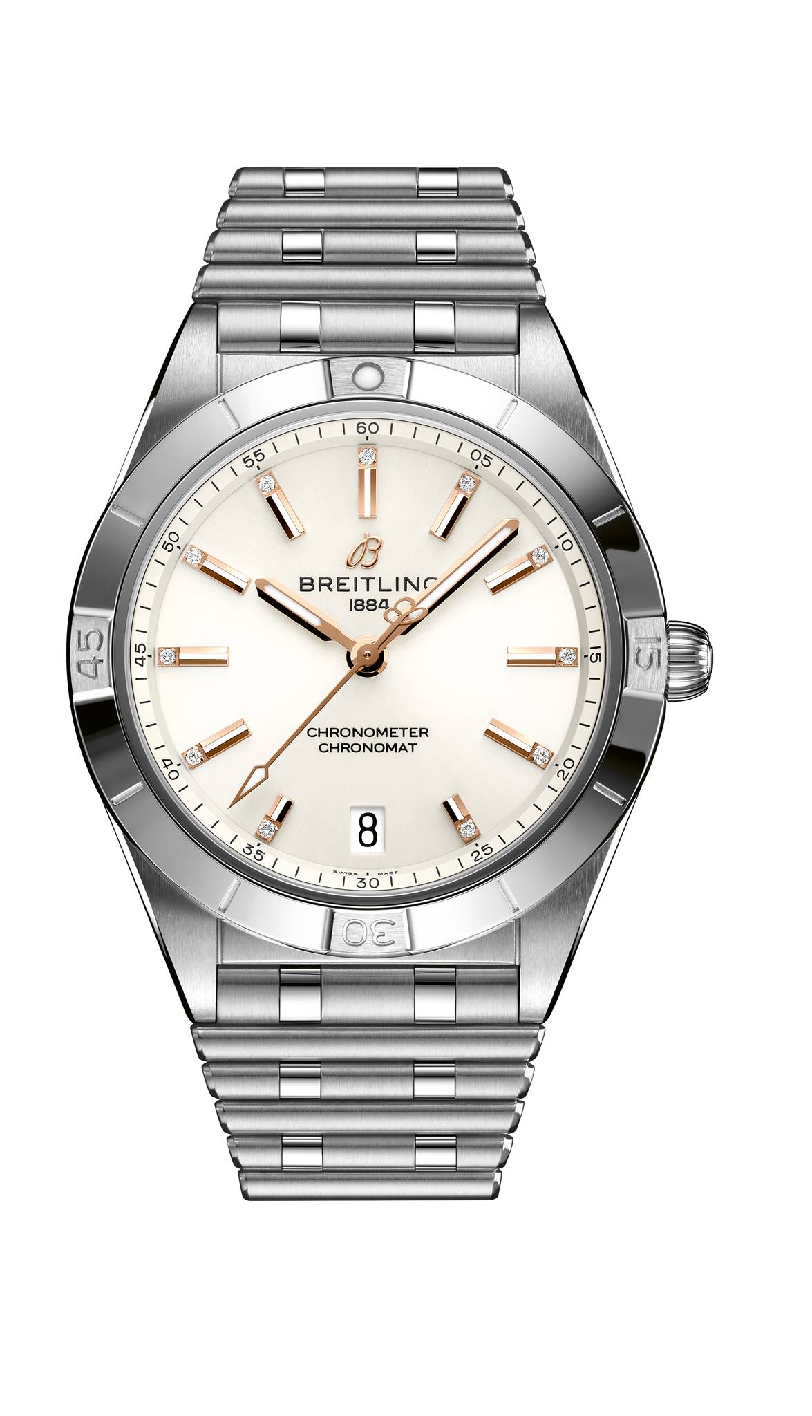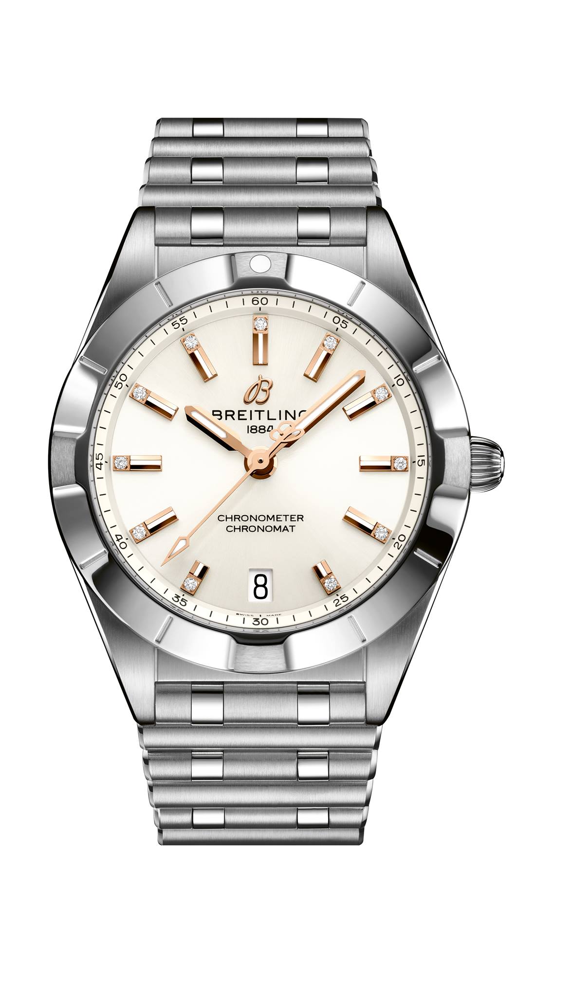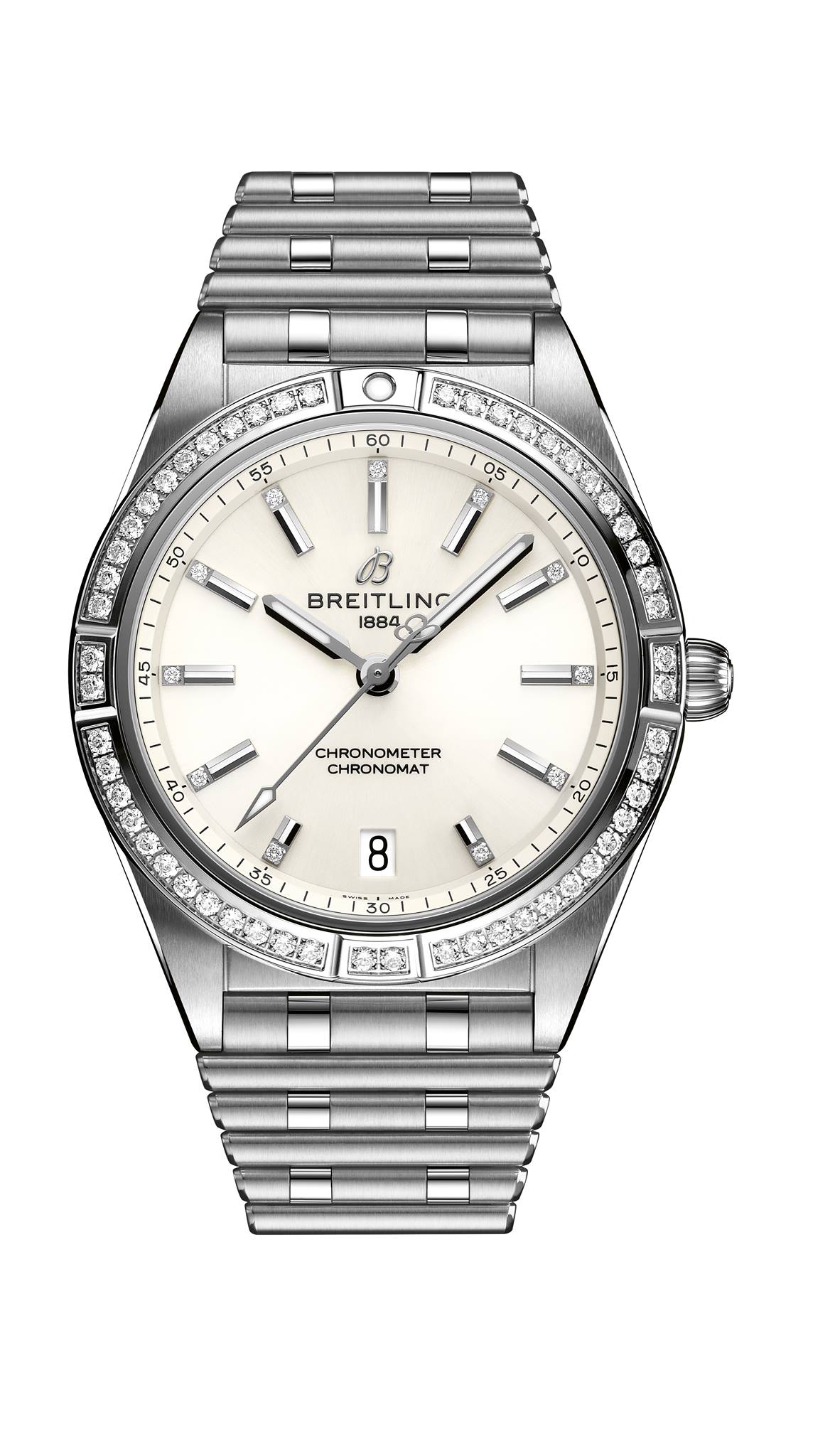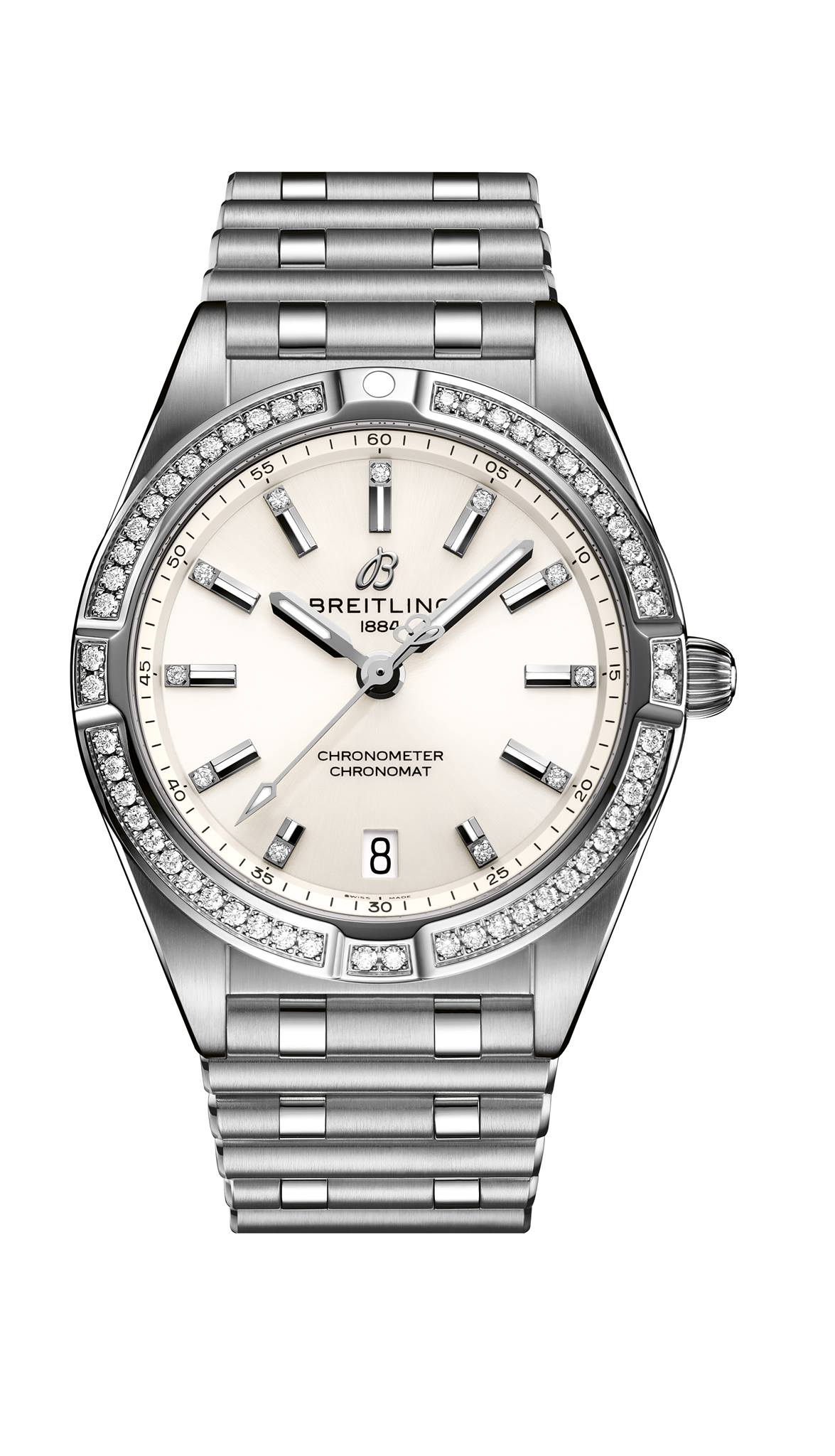Para el modelo de cuarzo Breitling destinó la caja de 32 mm, más compacta y diseñada para destacar la elegancia de la mujer. En su interior porta el calibre SuperQuartz, mucho más preciso que un cuarzo tradicional. Este tamaño se ofrece con batería de vida útil entre tres y cuatro años, y presume siete colores de carátula.