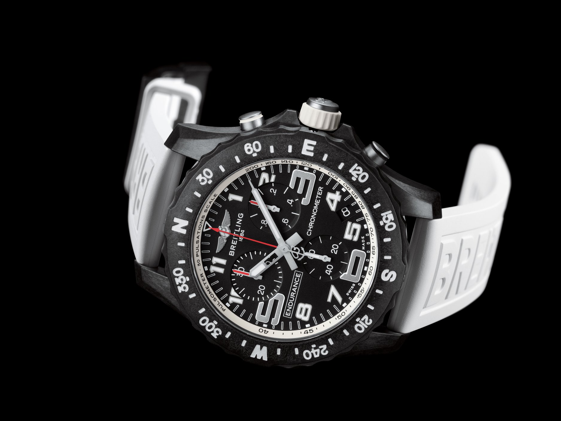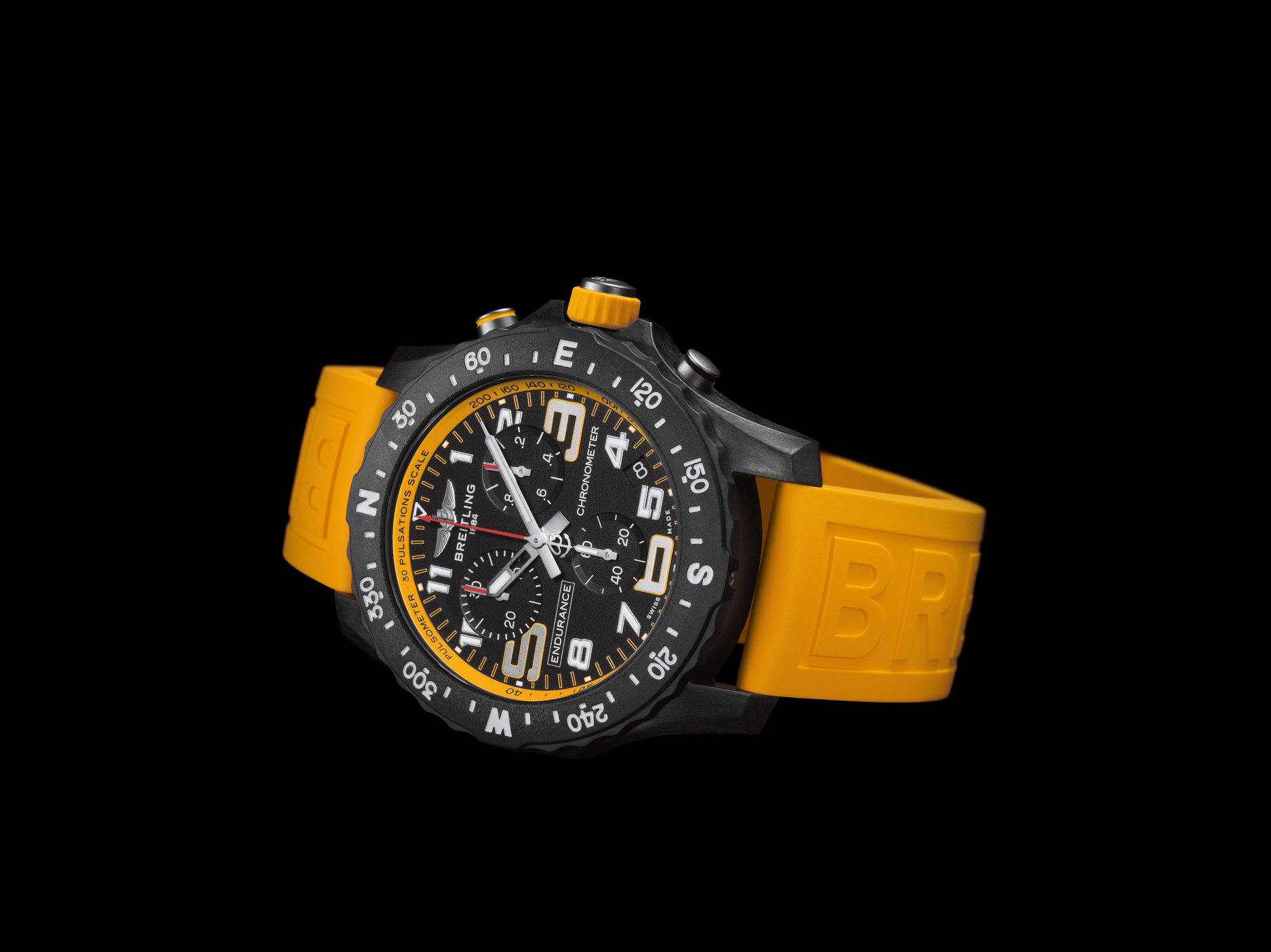 Hay cinco modelos del nuevo Breitling Endurance Pro. Cada uno presenta una carátula negra y un bisel giratorio bidireccional negro con puntos cardinales grabados (N, S, E y W). Las cinco ejecuciones se distinguen por sus propios colores llamativos: están diseñadas con un bisel interior, que está marcado con una escala de pulsómetro útil, en una opción de blanco, azul, amarillo, naranja o rojo, lo que facilita al usuario la mantenga un registro de su frecuencia cardíaca durante las sesiones deportivas.
