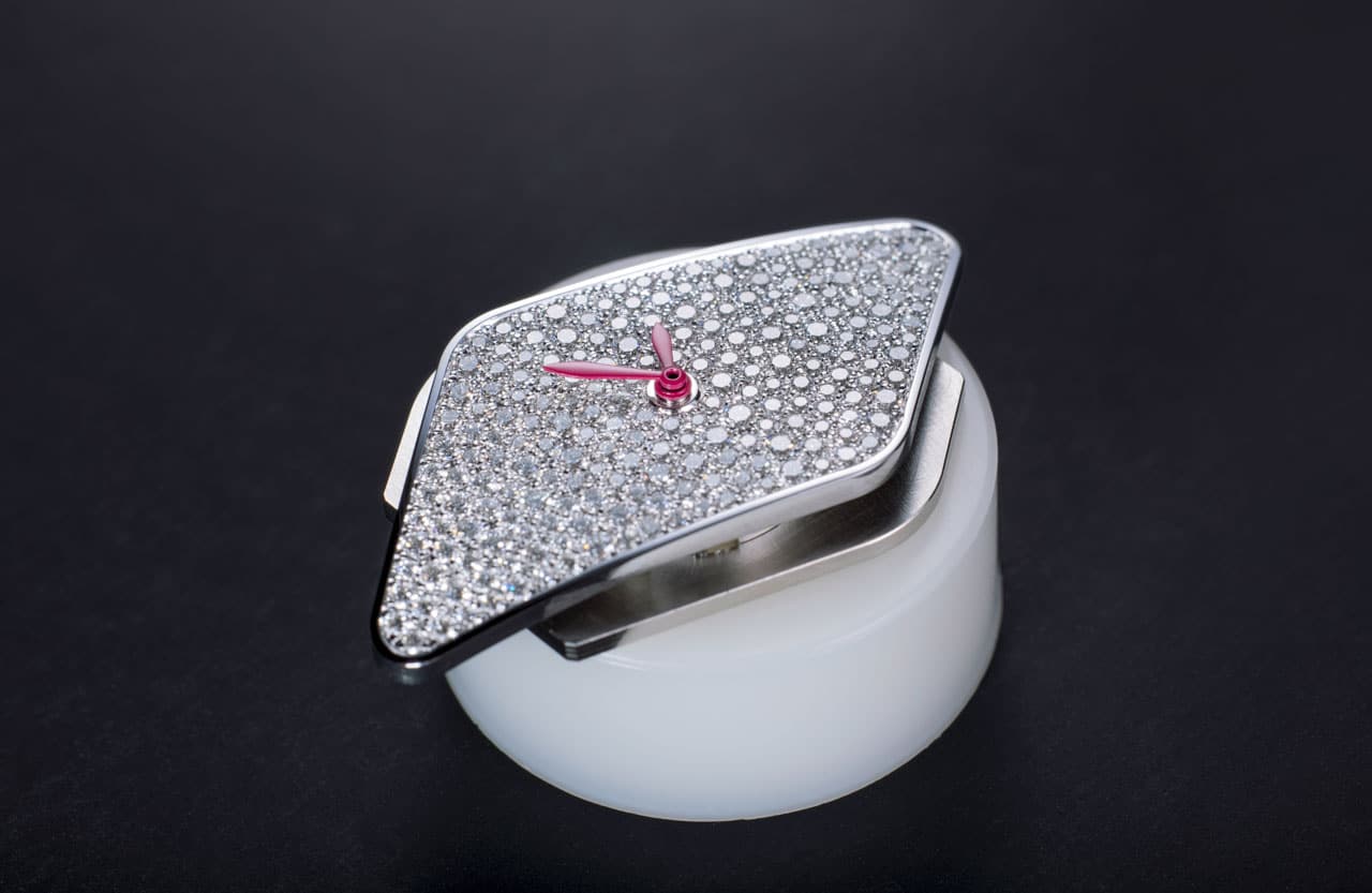 Alrededor de 2,000 horas se requirieron para ver la culminación de este reloj que además incorpora el nuevo micromovimiento mecánico Piccolissimo de Bulgari, con un diámetro de 12 mm, un grosor de 2.50 mm y un peso de solo 1.30 gramos. Recordemos que este es el calibre mecánico redondo más pequeño de la actualidad.