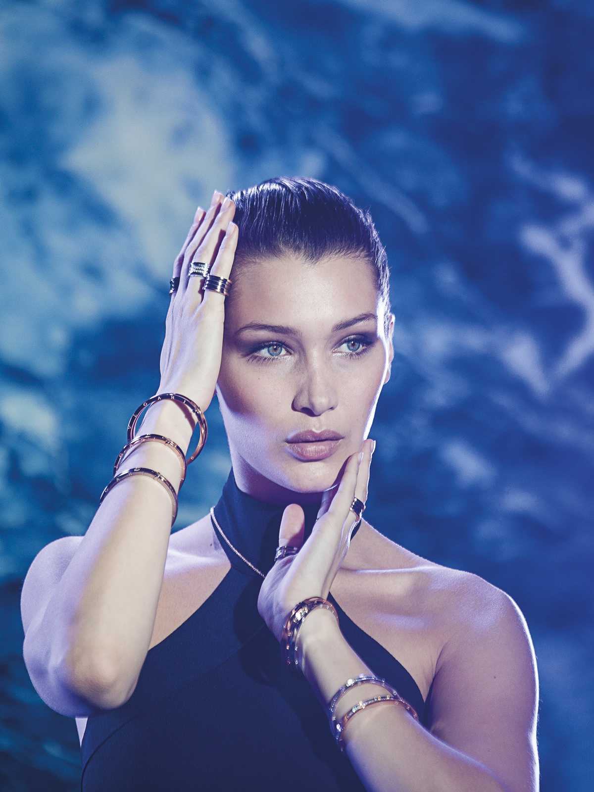Determinada, pero tímida, así se describe Bella Hadid, con una mirada tan poderosa como mística, posee una gran fortaleza que inspira a una generación de mujeres a encontrarse a sí mismas. Bella fue seleccionada por Bulgari hace prácticamente un año con la misión de encarnar la visión de la firma por ofrecer exclusividad e individualidad. Dicha mancuerna ha logrado aterrizar bien en la mente de los amantes de la joyería fina y realizar un puente generacional entre una Casa cargada de eternidad y una mujer llena de futuro.