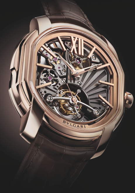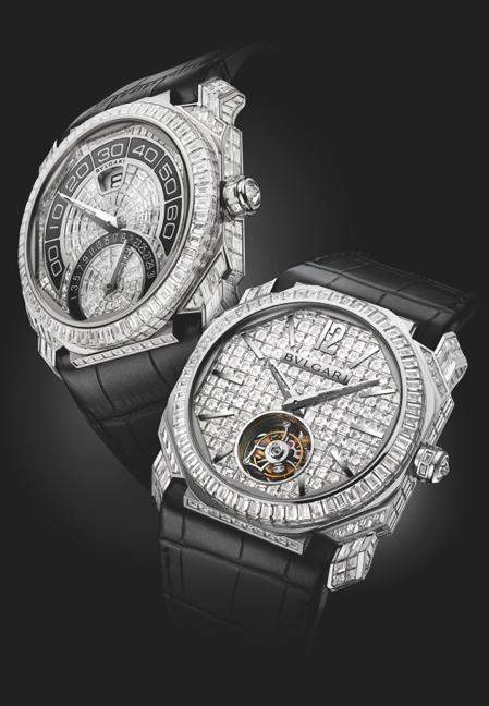 Sin duda el Carillon Tourbillon develado hace algunos años sigue siendo una de las piezas preferidas por los coleccionistas alrededor del planeta, es por ello que Bvlgari lo continúa presentando en diferentes ediciones. Animado por el calibre de carga manual con repetición de minutos (carillon de tres martillos), la impresionante construcción de este motor y su caja –de 48 mm– entregan un sonido puro, potente y hermoso.
