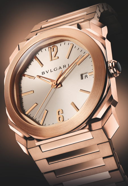 Continuamos con el análisis de la colección de Bvlgari y en la línea Octo encontramos evolución de producto gracias a la incorporación de una referencia en oro rosa de 18 quilates para caja y brazalete, además piezas con pavé de diamantes talla baguette, y una más con complicación de hora saltante digital en punto de las doce y fechador y minutero retrógrados.