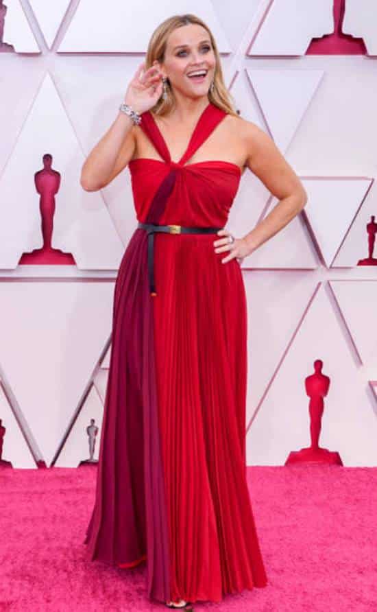Por su parte, la ganadora del Oscar Reese Witherspoon, lució impresionantes joyas de Bvlgari para la 93 edición anual de los Premios de la Academia, que combina una colorida mezcla de rubíes (11,74 cts), diamantes (25,2 cts), ónix y perlas, valoradas en más de $ 3 millones y con un brazalete único que se introdujo en la colección de alta joyería Barocko 2020 de Bvlgari.