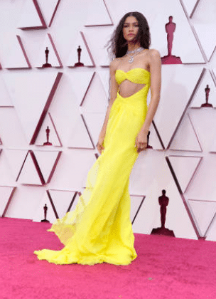 La embajadora de Bvlgari, Zendaya, presentó un impresionante collar de diamantes amarillos en los Premios de la Academia de este año, ofreciendo un adelanto especial de la colección de alta joyería 2021 de la marca, Magnifica, que se lanzará este verano. La pieza transformable tiene dos collares de diamantes con un broche central extraíble y una borla, para usar de varias maneras. La premiada actriz acentuó su look con pendientes de diamantes, brazalete y acabados con anillos de diamantes, por un impresionante total de 183.3 quilates, valorados en más de 6 millones de dólares.