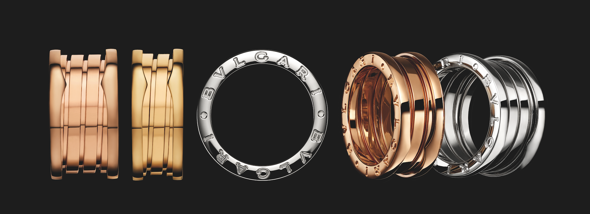 Tomando como inspiración la tradición de los romanos y egipcios, Bulgari presentó su nueva colección de joyas masculinas que se caracterizan por su brillo y resplandor. Los collares Catene cincelados en oro amarillo de 50 y 55 cm se atan por medio de una cadena elegante, mientras que los colgantes Parentesi hechos en oro blanco o amarillos, reflejan la sofisticación italiana. Por último, los anillos B.zero I engastados de diamantes y las pulseras, evocan la forma circular del Coliseo Romano los cuales contrastan el brillo del metal con el mármol y los destellos en oro.