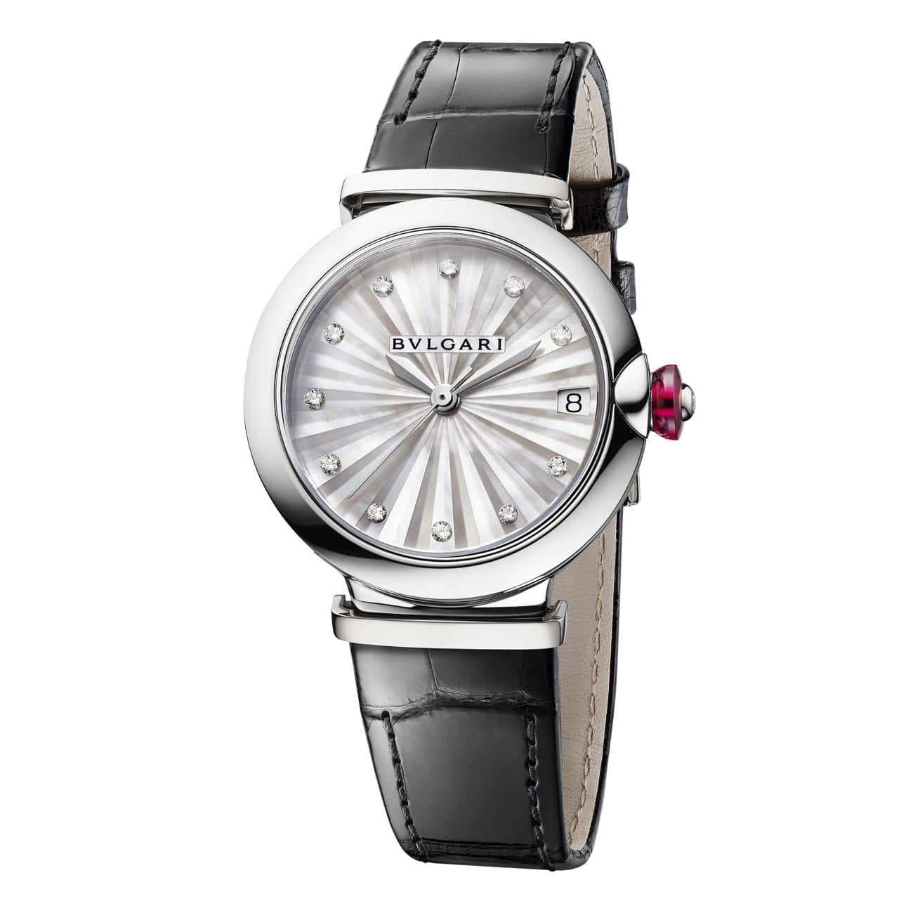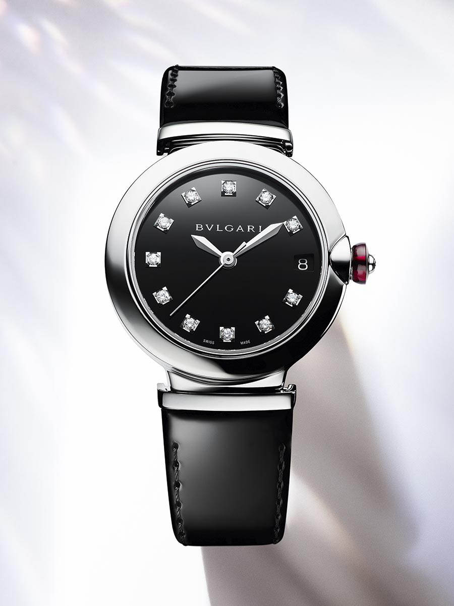 Complementando a la perfección las novedades de la Lvcea de 2021, una nueva versión en acero con una refinada carátula lacada en negro representa otra opción de diseño que habla de la audacia y la audacia estética de Bvlgari. El reloj de 33 mm viene con un movimiento automático y una correa de becerro barnizada en negro.