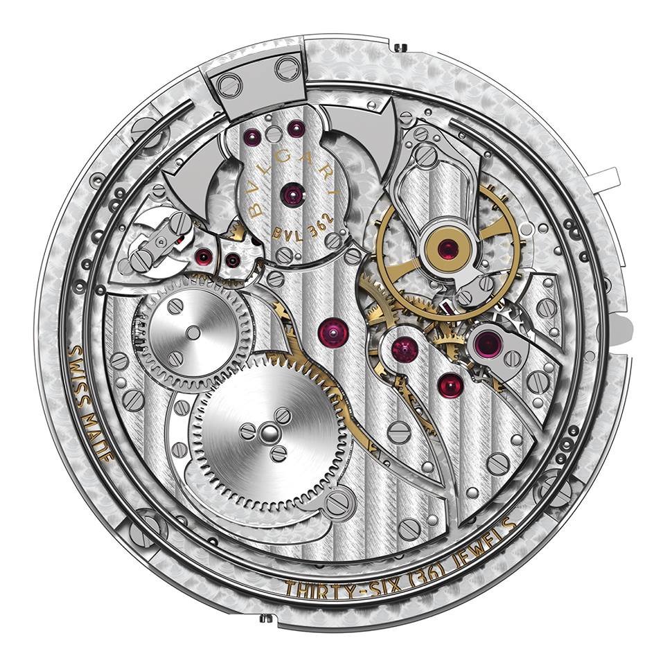 La física de los materiales está a la disposición de la alquimia moderna y basta una pizca de creatividad y un mucho de know how para romper las reglas y presentar el primer repetidor de minutos ultraplano hecho en carbón. Dicho material incrementa la nota majestuosa de la repetición, más allá del titanio, y si bien ya habíamos notado que este elemento era benéfico para las complicaciones de sonería (Hublot Classic Fusion Cathedral Minute Repeater), Bvlgari cambia la forma en la que lo emplea y comprime para lograr un reloj sumamente plano, el más plano de las repeticiones de minutos.