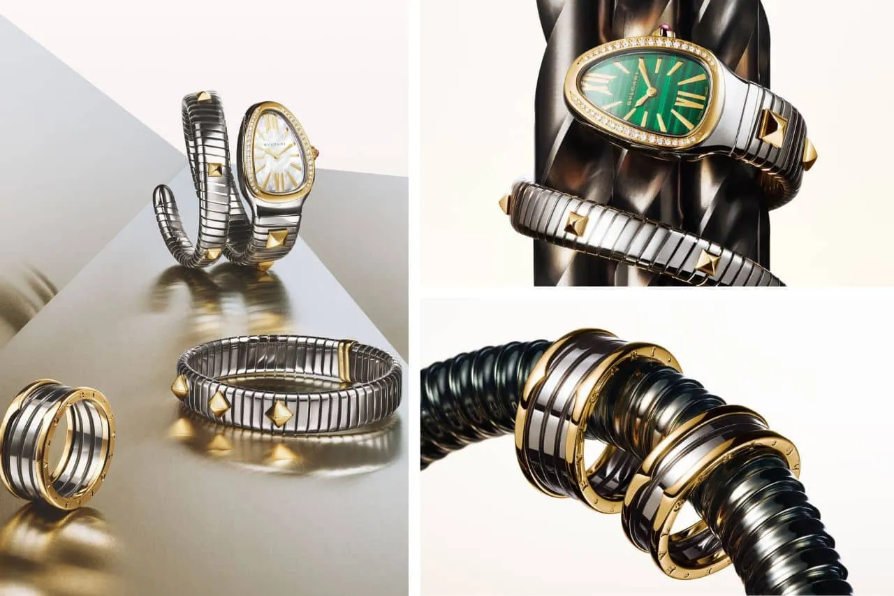 Bvlgari fusiona oro y acero en una colección que actualiza su legado con piezas versátiles y contemporáneas como B.zero1, Tubogas y Serpenti Tubogas Studs.