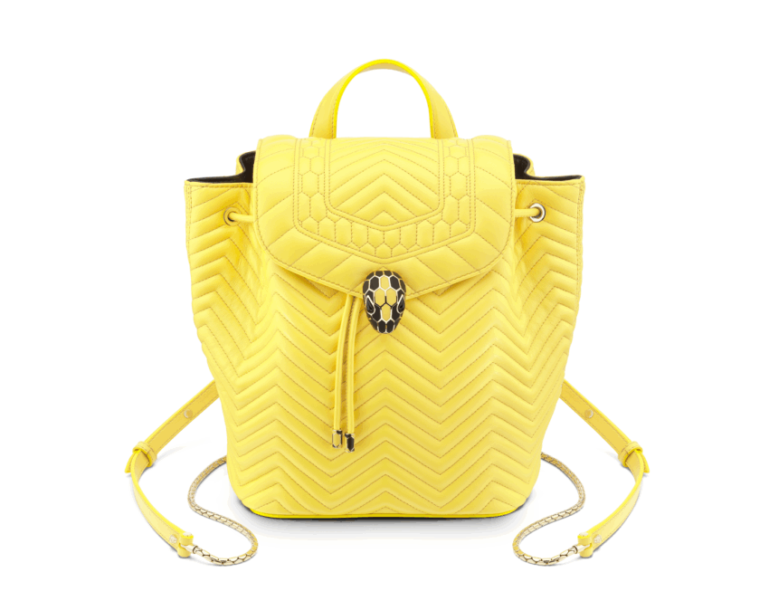 Por otro lado, Bvlgari sabe que no hay mejor accesorio para una mujer que una backpack para completar un outfit casual, que pueda brindarle un toque de originalidad, comodidad y exquisitez en cada detalle. Por este motivo, en el marco de su primera Pop Up Store en América Latina, Bvlgari lanzó su backpack Serpenti Forever edición limitada en color amarillo. Brindando honor al color oficial del anfitrión de la Pop Up Store: El Palacio de Hierro. También hay otros colores y diseños, como bolsas para el gusto de cada quien.