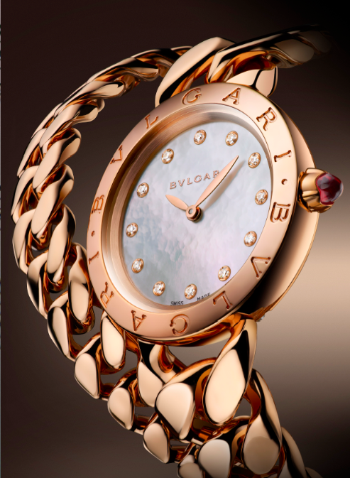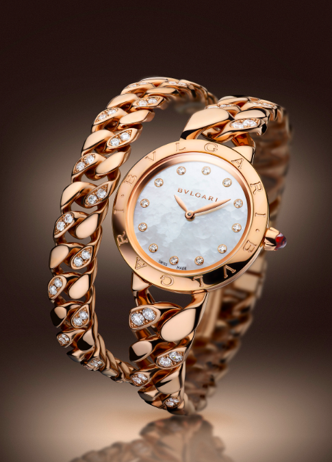 - El modelo Bulgari Bulgari Catene, con carátula en madreperla y dimantes engastados en la cadena.