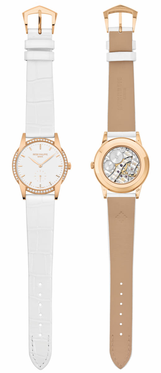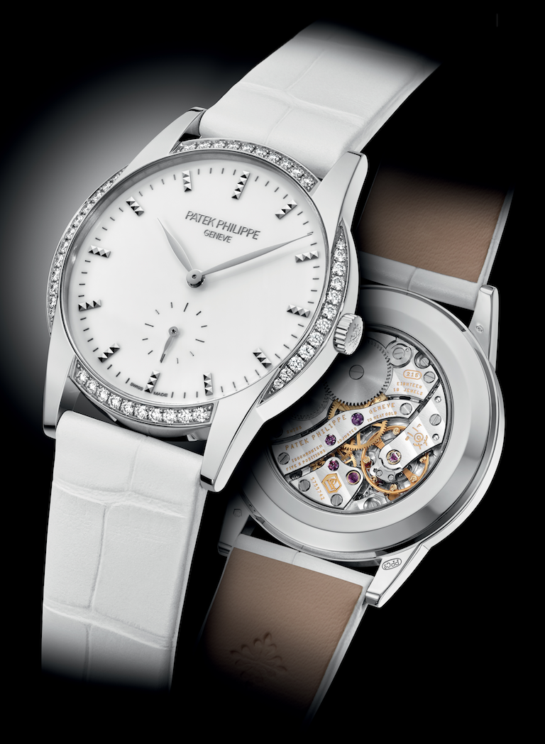 Además, el Calatrava “Timeless White” exhibe la belleza de su construcción a través de su fondo de cristal de zafiro, transparencia que incita a su afortunada propietaria a mostrar la mecánica que porta en el pulso, los acabados, órgano regulador y decoración: Côtes de Genève para los puentes, aristas biseladas y pulidas, ruedas de latón con reflejos dorados y brazos achanflanados, ruedas de acero suavizadas para el funcionamiento del barrilete y un volante Gyromax®. Estos son algunos de los elementos que dan vida a esta creación totalmente enfocada a los gustos y necesidades de una dama.