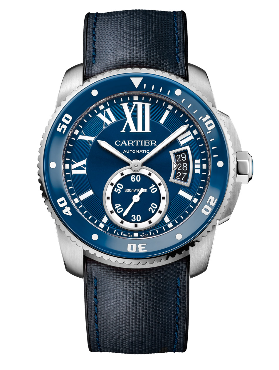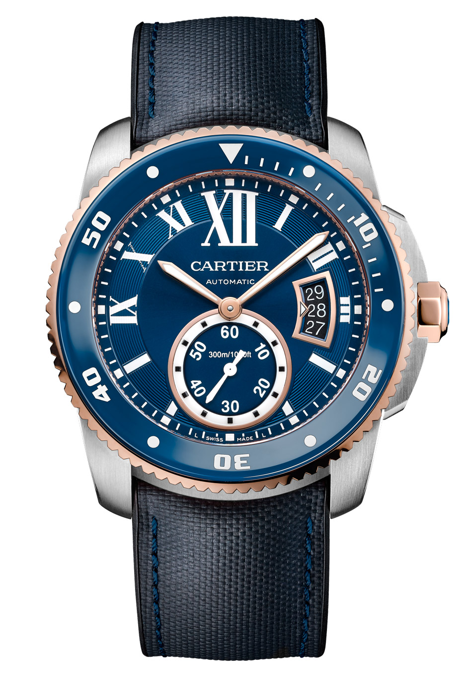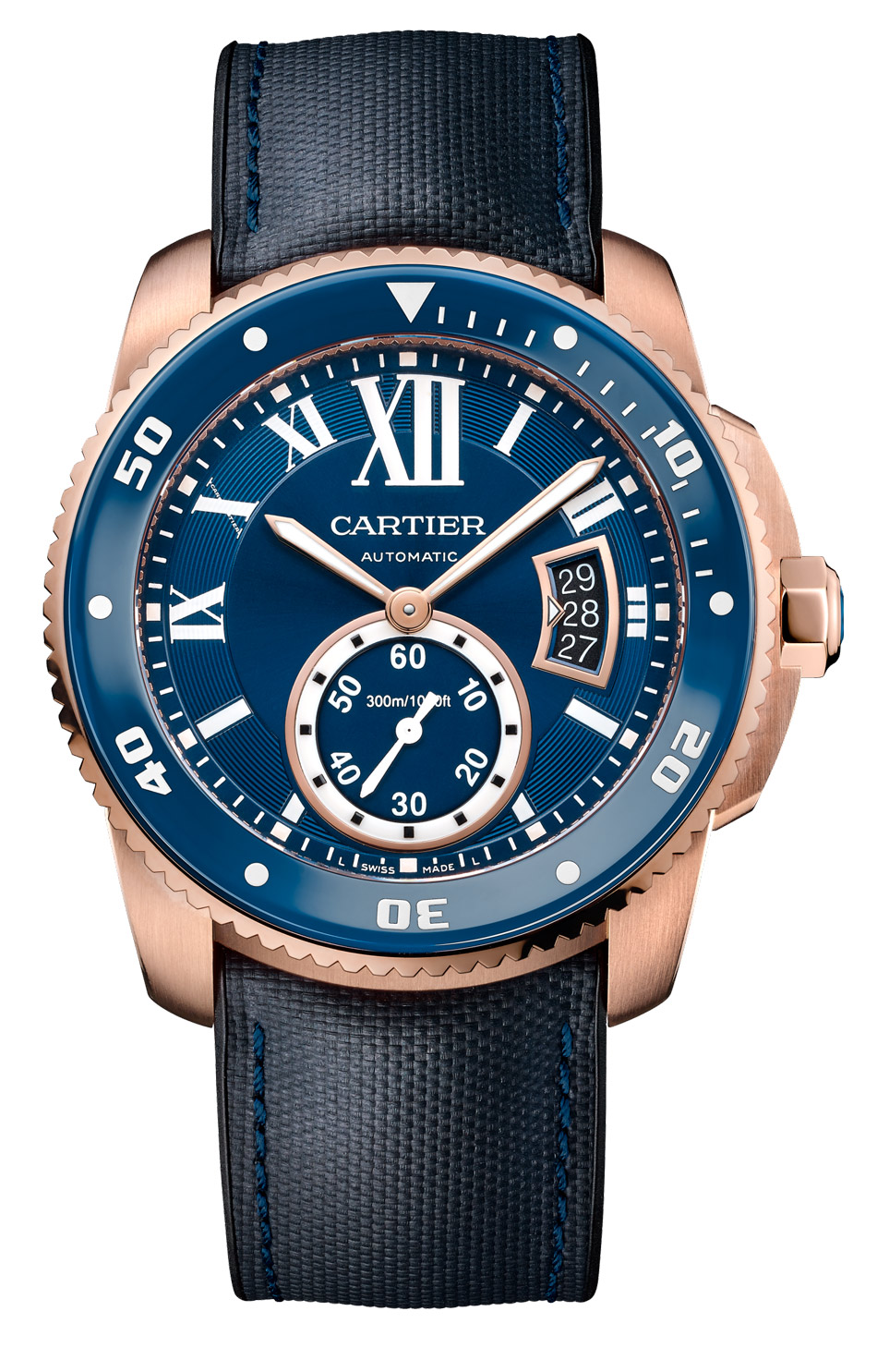 Producto de la colección Calibre, que comprende un tres manecillas con fechador, un cronógrafo y el –ahora– emblemático reloj de buceo en configuraciones de acero y caja de oro rosa, este 2016 se presentó una referencia en tonalidades azules que, además, incorpora un bisel de cerámica, una correa de piel-caucho resistente al agua de mar y una carátula en este color.