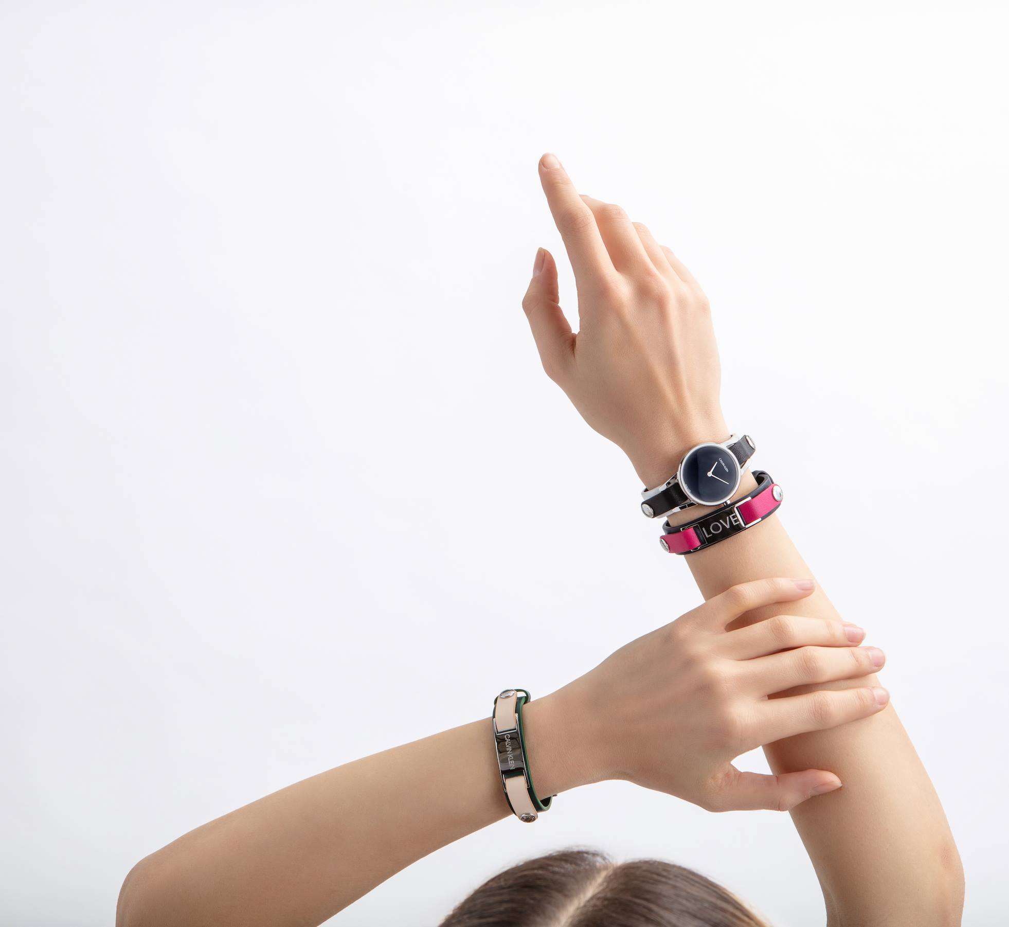 El tema central de la presentación de este día, se trata de un set que contiene un reloj y 3 opciones diferentes de pulsera de cuero, dentro de ellas destacan una placa que exhibe la palabra Love y una más que promueve el valor de marca. El reloj puede ser montado de manera práctica en cada strap y vestirse con diferentes outfits de acuerdo al mood de la persona. Todos están desarrollados en acero inoxidable, portan calibre de cuarzo ETA y se pueden vestir juntos o separado.