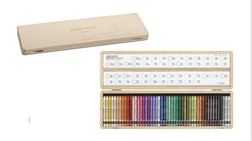 Para la edición limitada la Maison lanza una preciosa caja de madera de haya de calidad excepcional que cuenta con certificación PEFC con 50 colores distintos. Contiene, por supuesto, los quince nuevos tonos desarrollados para esta celebración, además de los 35 de la gama original de 84 Neocolor II Aquarelle. Incluye tanto colores brillantes como opacos.