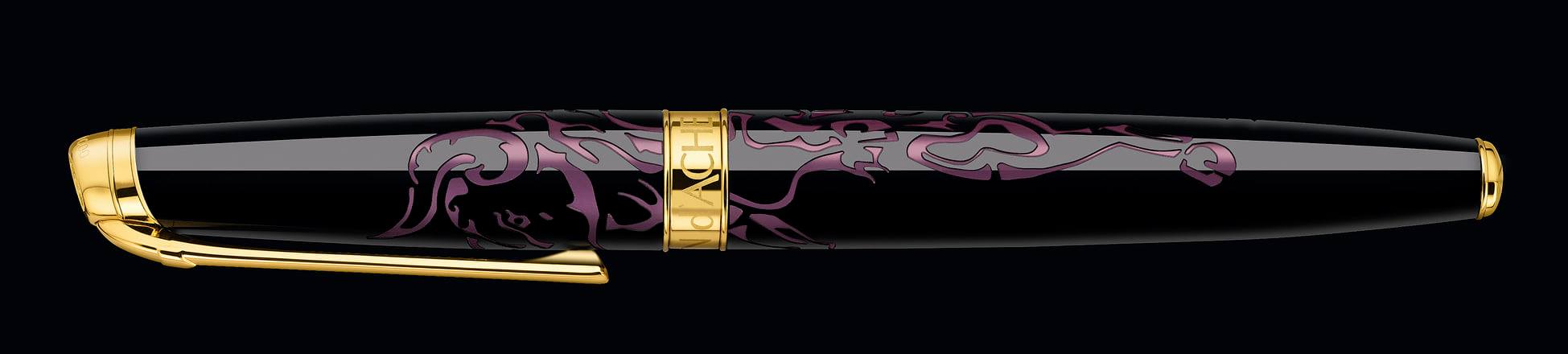 - Emblema: laca de china pulida en negra brillante y logotipo de Caran d´Ache