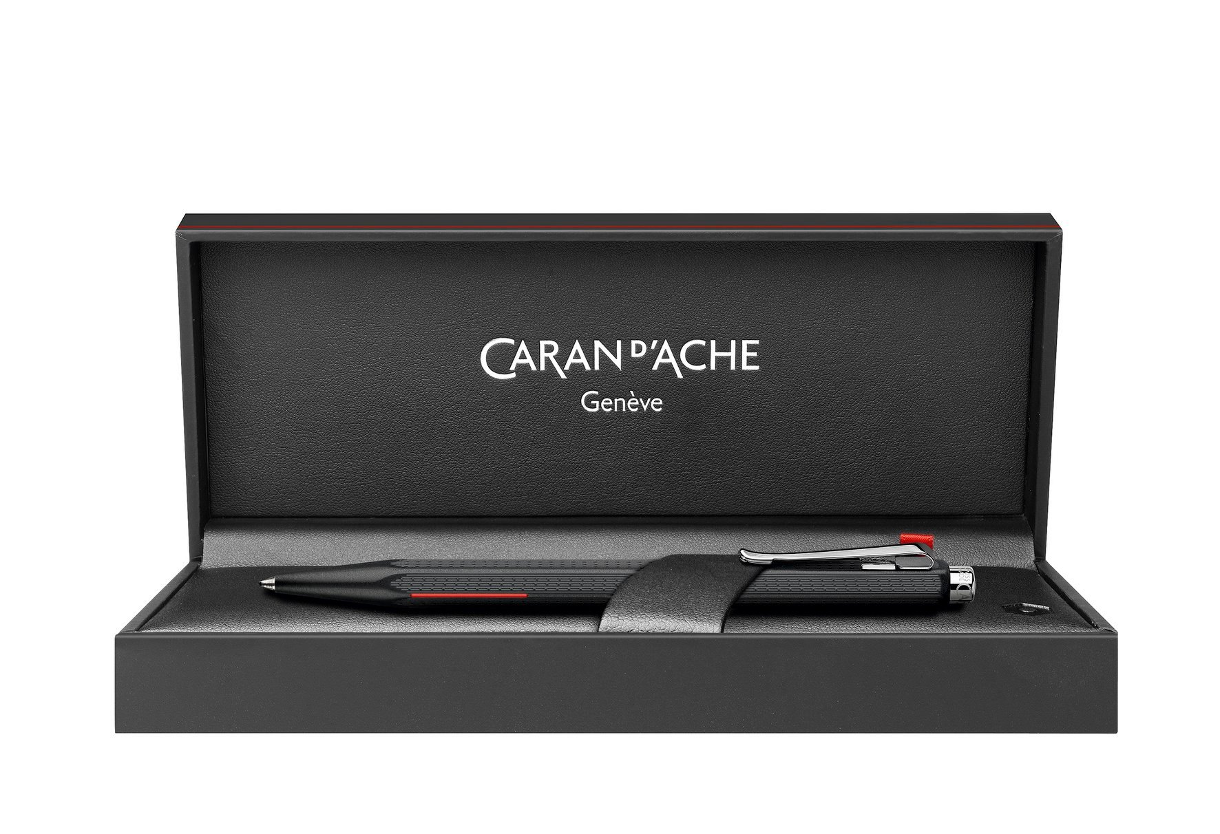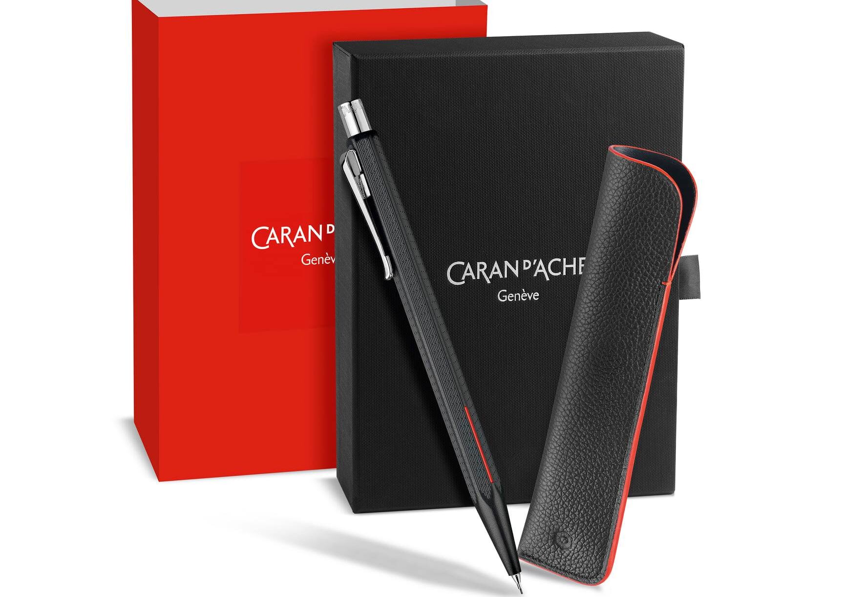 Con un estilo sofisticado, este nuevo instrumento de escritura es sin duda el compañero ideal para los hombres de carácter. También está disponible en un kit de regalo acompañado de un porta plumas de piel negro que tiene una raya roja totalmente a juego.