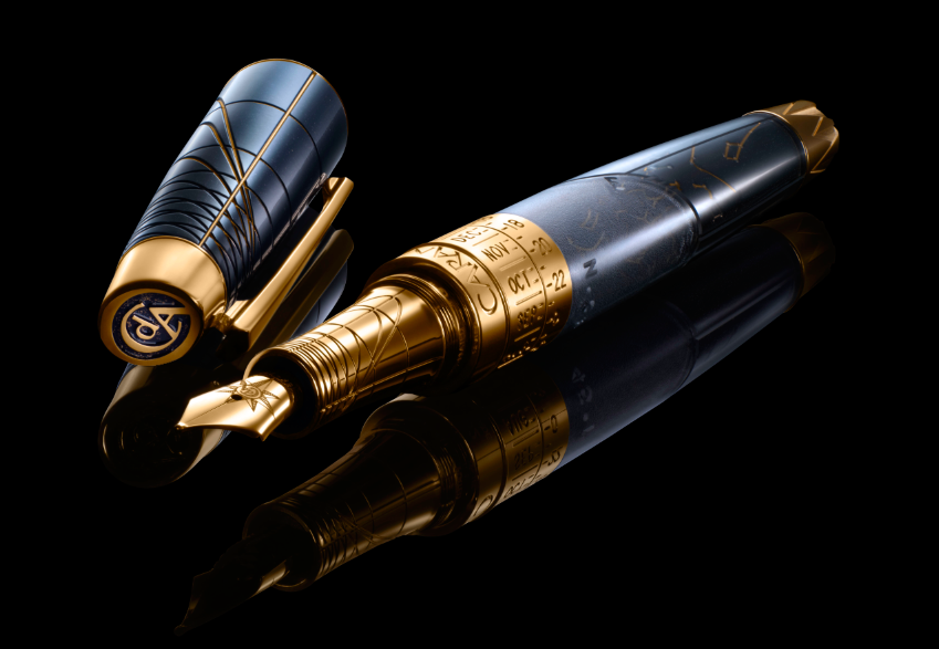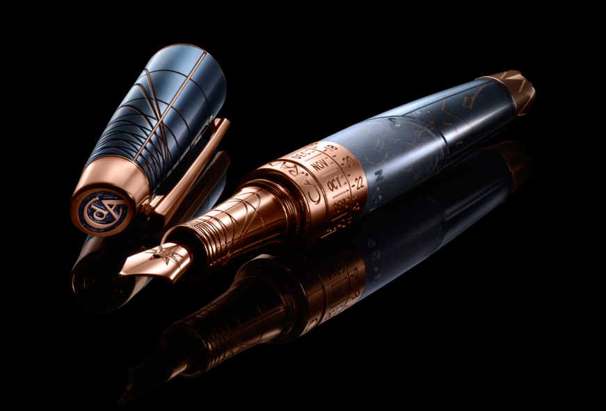 Esta sensacional pluma cuyo nombre significa “escrito en el cielo” permite saber la posición de las estrellas y las constelaciones a una hora y en un día determinados gracias a un mecanismo inteligente.