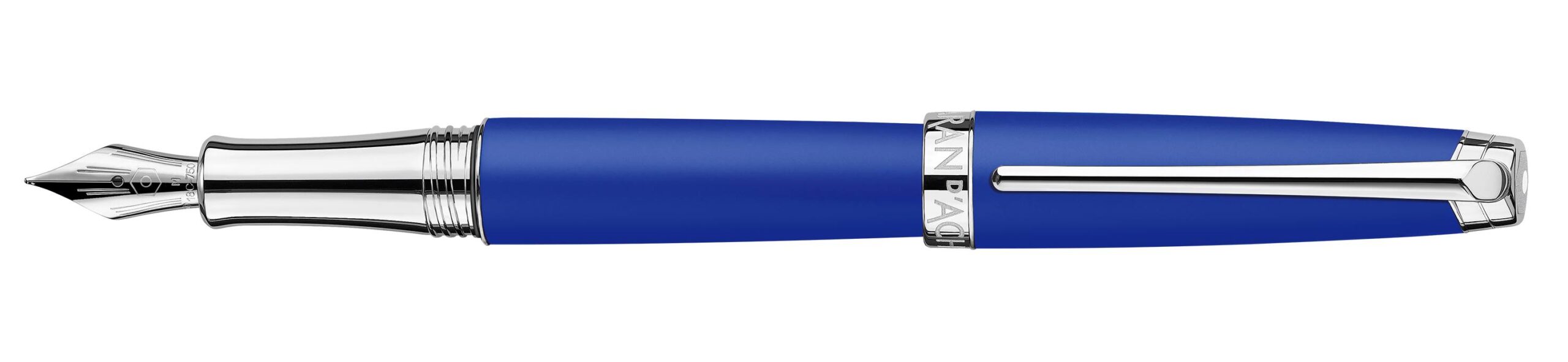 Los instrumentos de Haute Ecriture Léman se reinventan a imagen de Yves Klein. Los artesanos de Caran d’Ache utilizan su incomparable dominio del lacado para envolver el cuerpo mate de los bolígrafos y plumas estilográficas Léman en el tono ultramar. Juntos, estos dos instrumentos cuentan con un acabado delicado y líneas curvas que ofrecen una comodidad de escritura inmejorable, con un toque moderno. Con un plumín de oro de 18 quilates, la pluma estilográfica se presenta en un elegante estuche junto con un tintero.