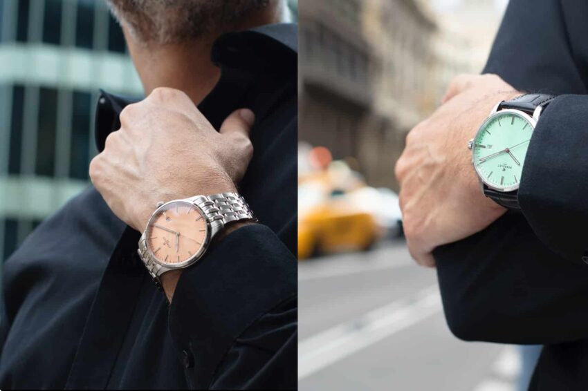 Por un lado la tonalidad menta está diseñada para el cliente que busque una pieza que inspire tranquilidad y relajación. Por otro lado, el salmón es un color recientemente popular en la relojería. Se caracteriza por generar serenidad y armonía. Ambas iteraciones cuentan con carátulas abombadas con acabado soleilléepara enriquecer los reflejos de luz.