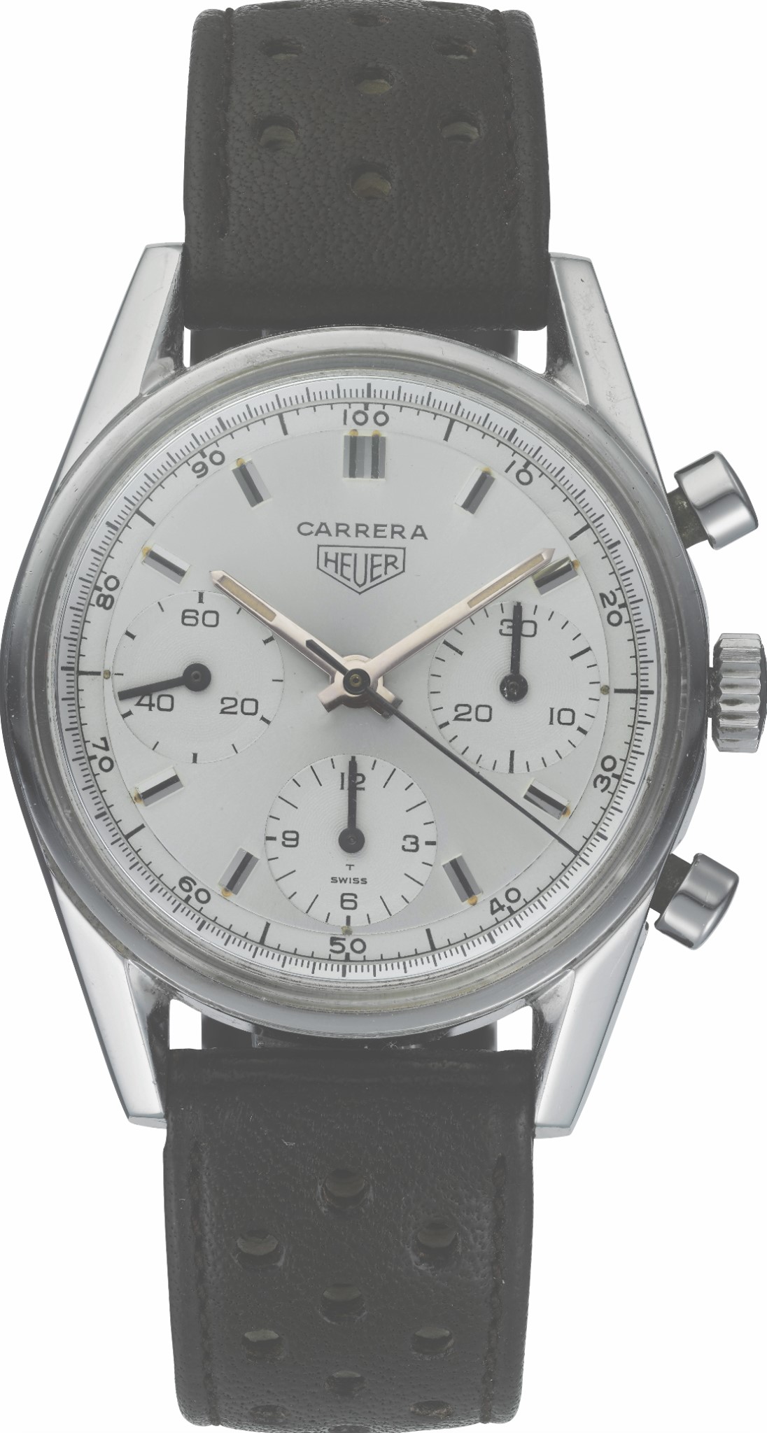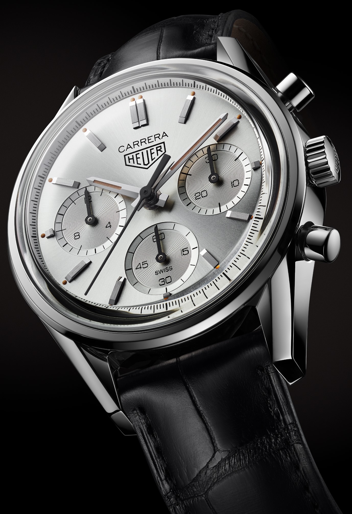 En 1964 se presentó el célebre modelo con carátula plateada, ofreciendo sencillez, buen gusto y funcionalidad. Los tres totalizadores muestran un efecto azuraje, mientras que la carátula contrasta con el efecto estrella. Esta pieza 2447S, fue reinterpretada para el 160 aniversario. El reloj pasó de los 36 a los 39 mm de diámetro para la caja, ajustándose para incorporar el cambio de motor Valjoux 72 por el Heuer 02 y, por tanto, el contador de los segundos pasa a las 6, no a las 9 horas. Luce nuevas agujas para horas y minutos, mientras que la denominación Carrera y Heuer se lee impresa en el dial. Todo ello está protegido por un cristal de zafiro curvado que brinda un aspecto retro evocando al Carrera original. Edición Limitada a 1,860 ejemplares.