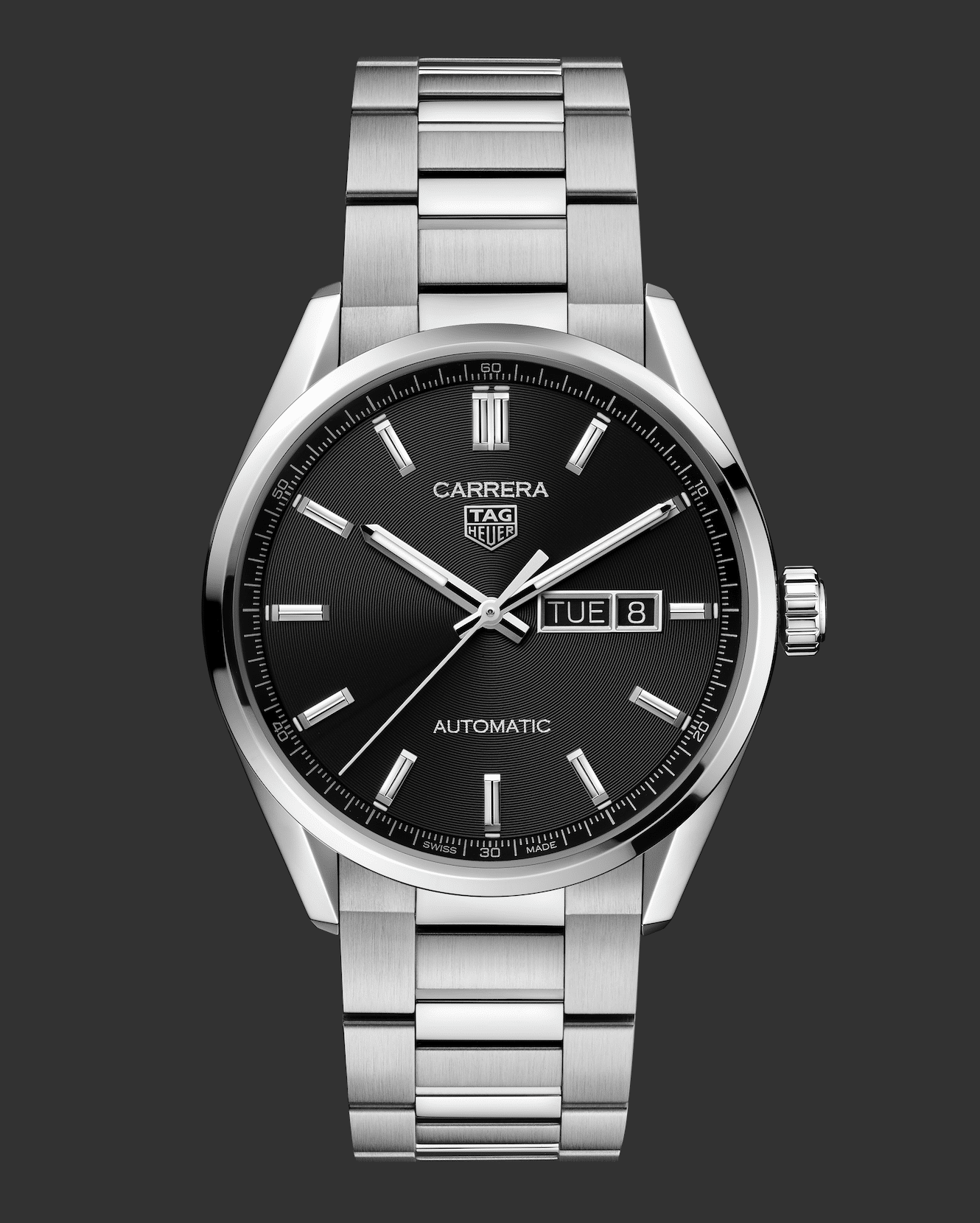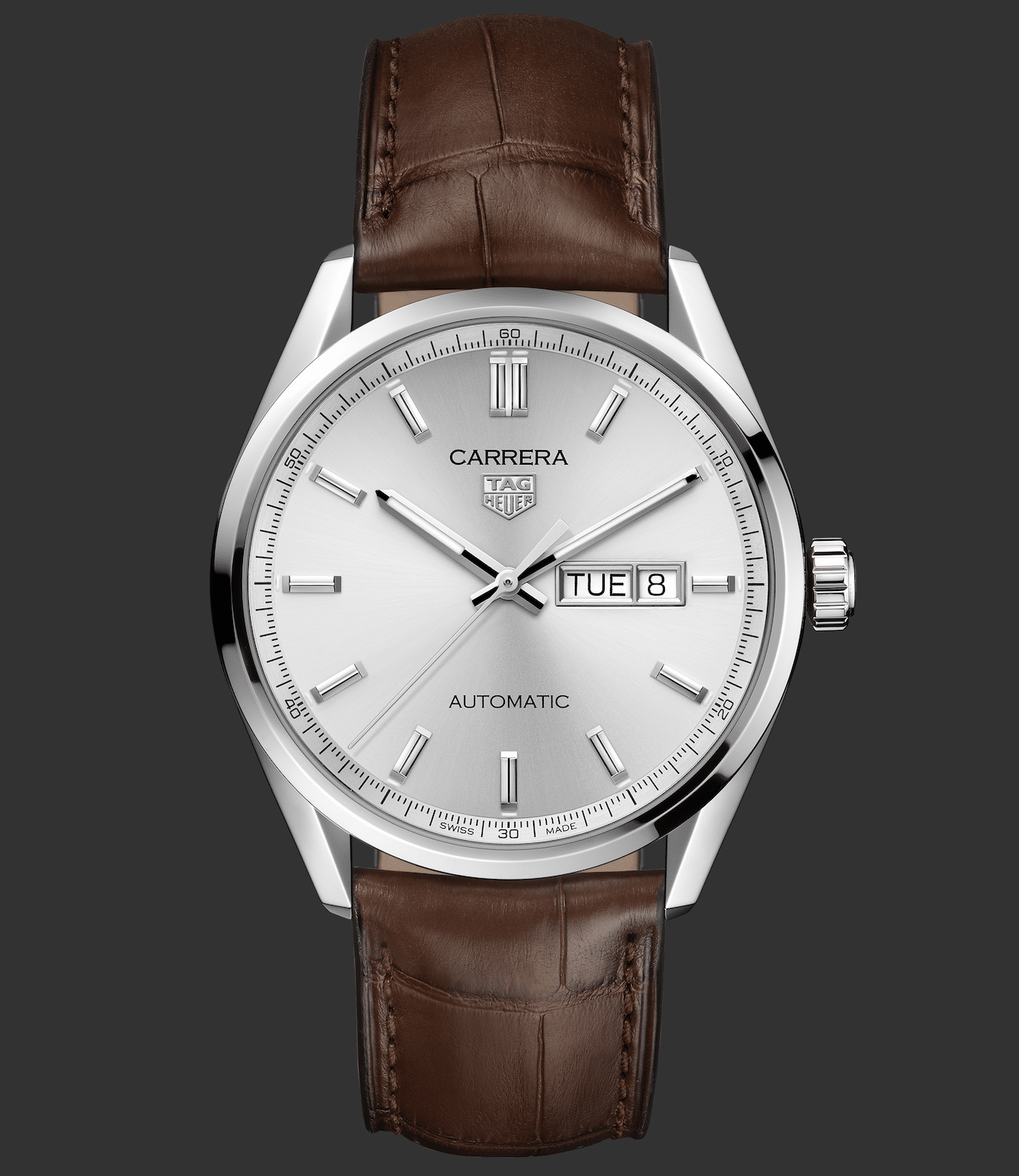 Los modelos Carrera de 39 mm y 41 mm de diámetro son impulados por el movimiento automático Calibre 5, alojados dentro de una caja nueva con asas que permiten absoluta comodidad. Está disponible con el nuevo brazalete con eslabones en forma de H, y correa de cocodrilo para los relojes de piel.