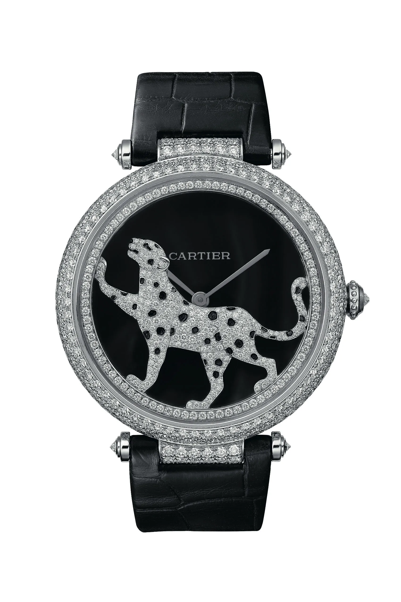 WW-VERANO 2012. La pantera funámbula se abalanza sobre el hilo de las horas. Juguetona y poderosa, la heroína del Bestiario Cartier doma el movimiento al ritmo de sus preciosas oscilaciones, muestra de una auténtica proeza de tecnicidad e inventiva en homenaje a la emblemática pantera de la Maison.