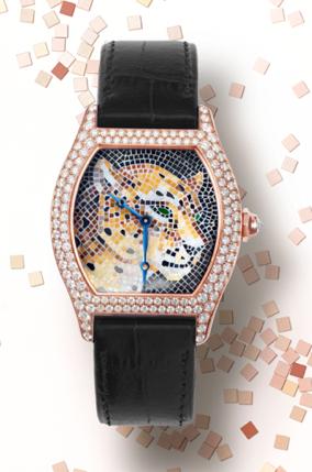 Las artes están presentes en Cartier, pero también sus artesanías, utilizando filigrana, dominando la marquetería y el engastado, la Maison vuelve a demostrar su buen gusto con una dualidad de panteras expectantes del horizonte y de una carátula animada por movimiento propio. Mientras que el damasquinado con diferentes oros es utilizado por la Casa y los relojes prendedor han llegado para quedarse.