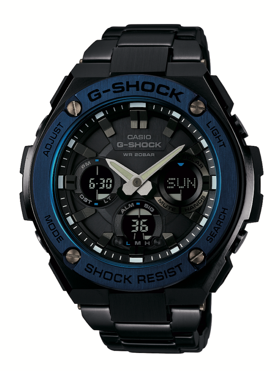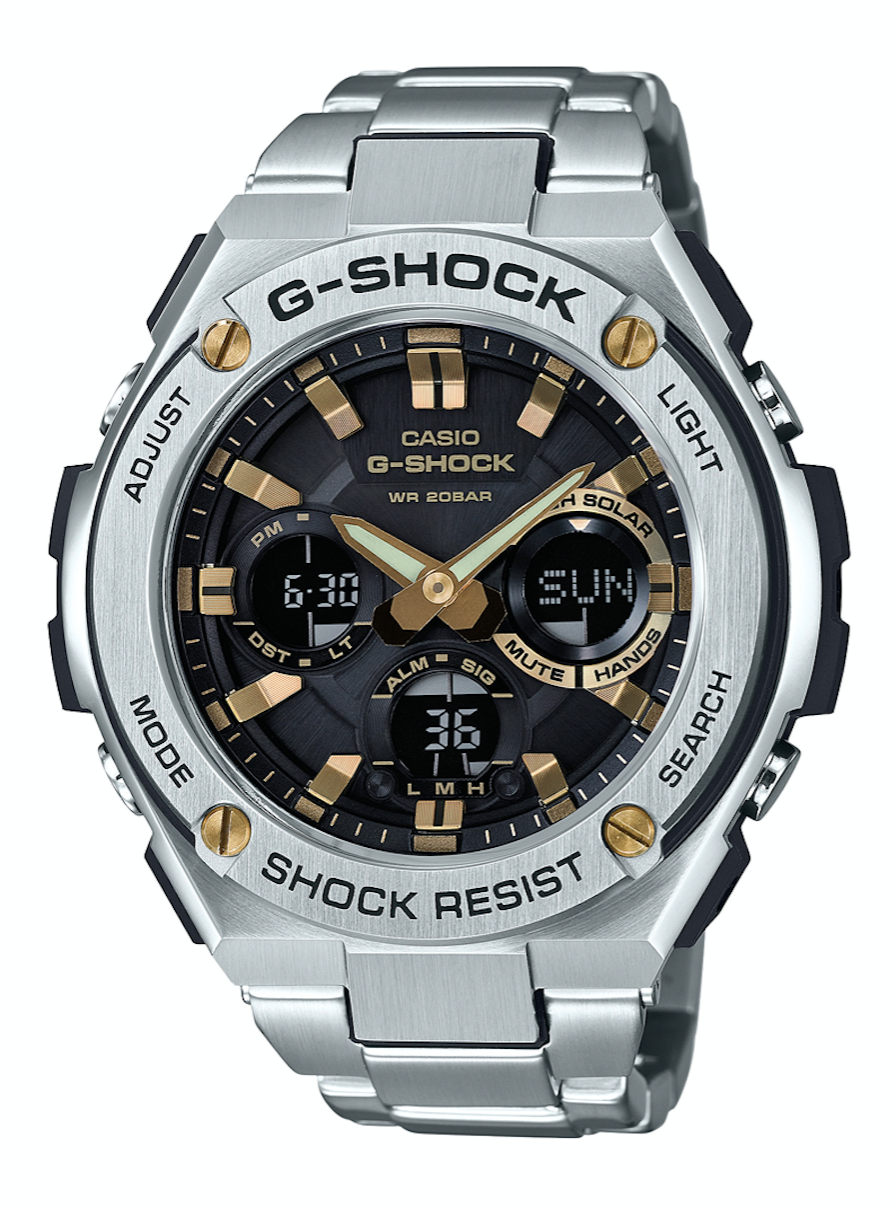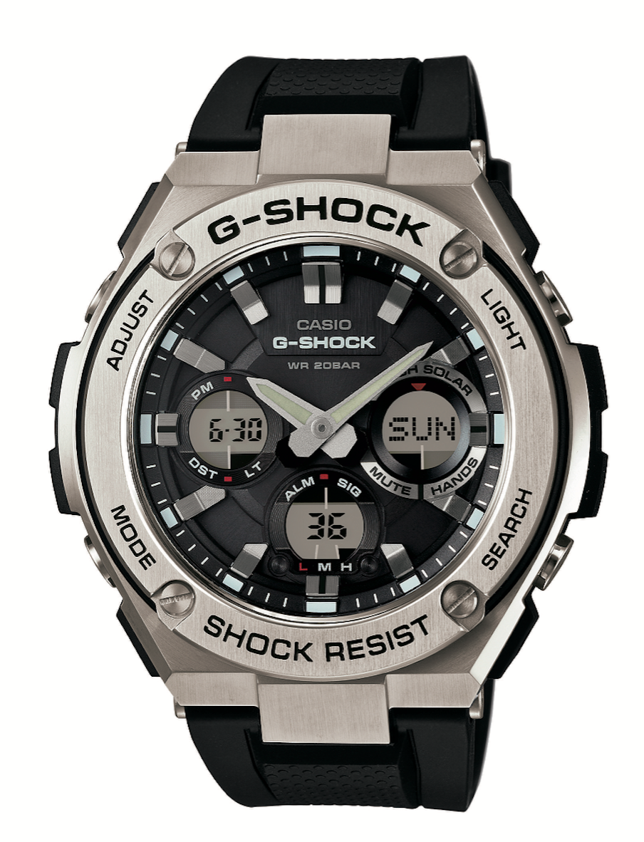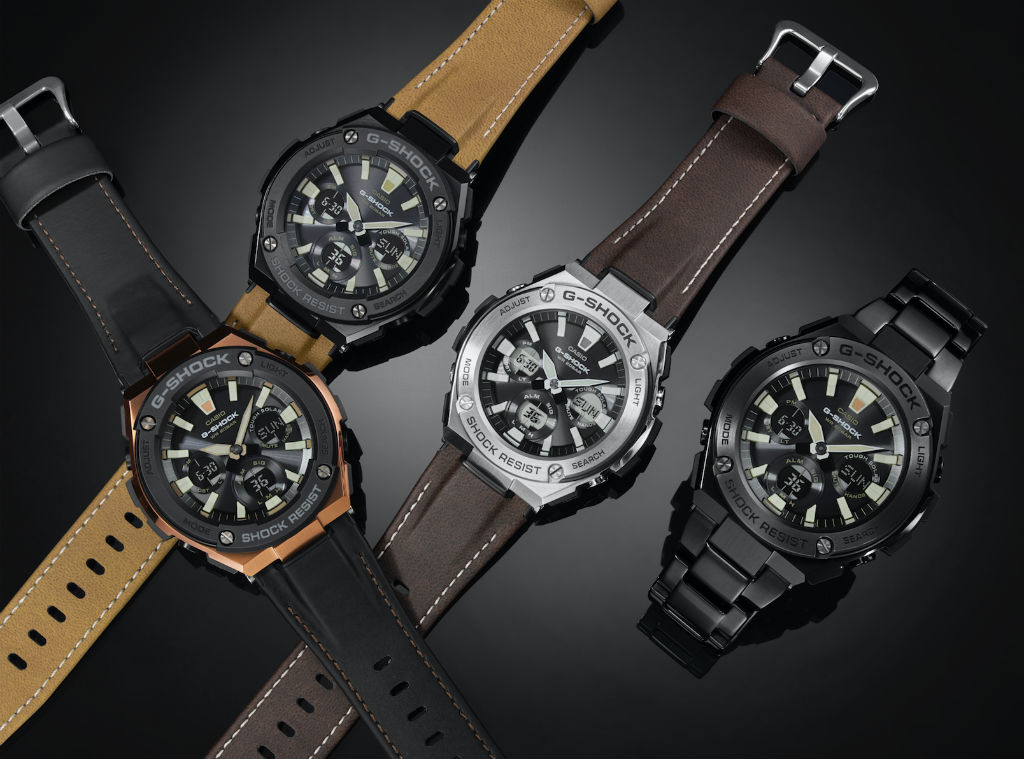 Por último, los modelos pertenecientes a la línea de G-Steel, se enfocan en un hombre con estilo casual y más juvenil. Desarrollados en acero inoxidable y resina, estos relojes cuentan con iluminación Neón, horas mundiales, alimentación solar, calendario automático y temporizador.