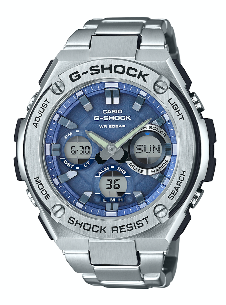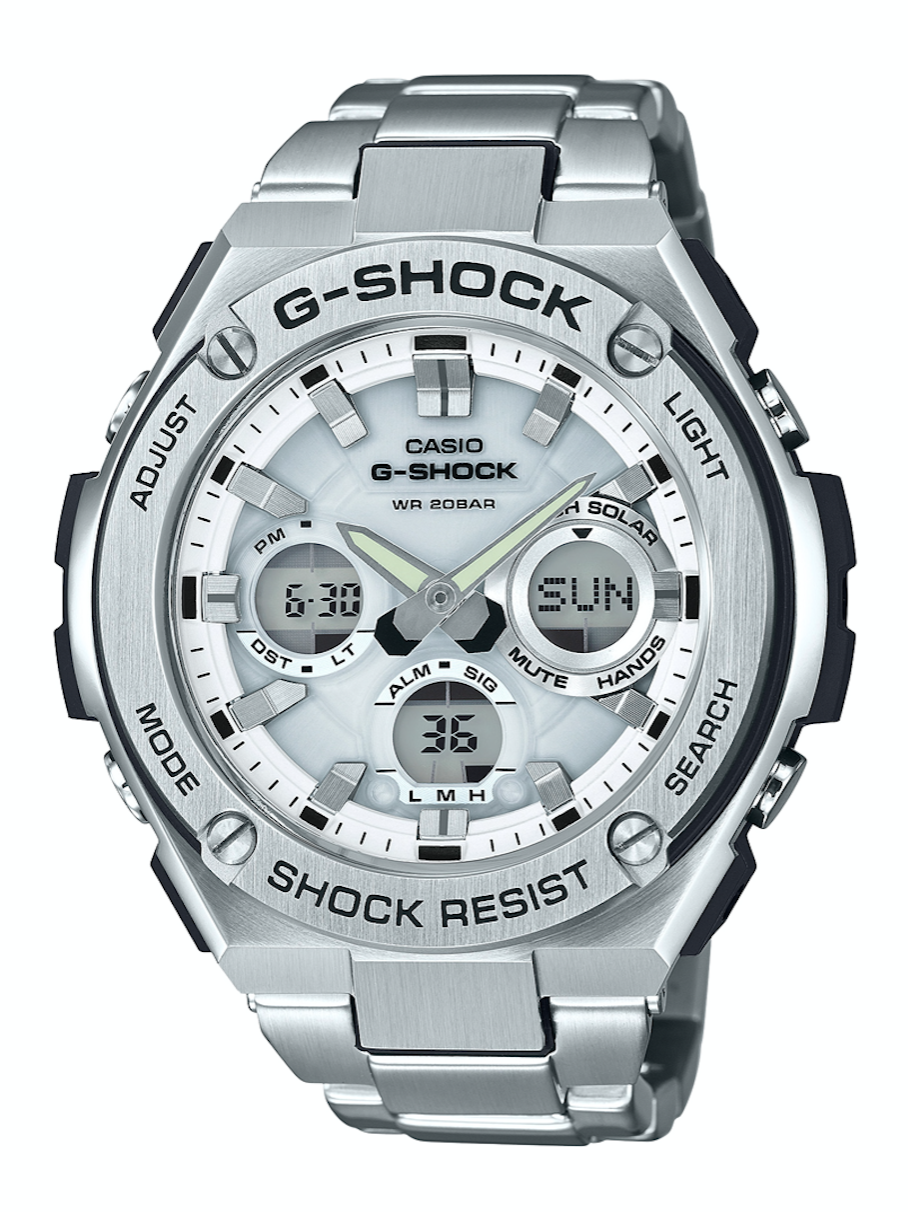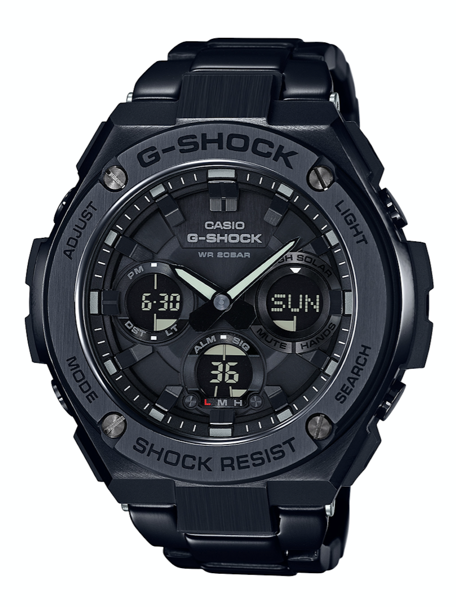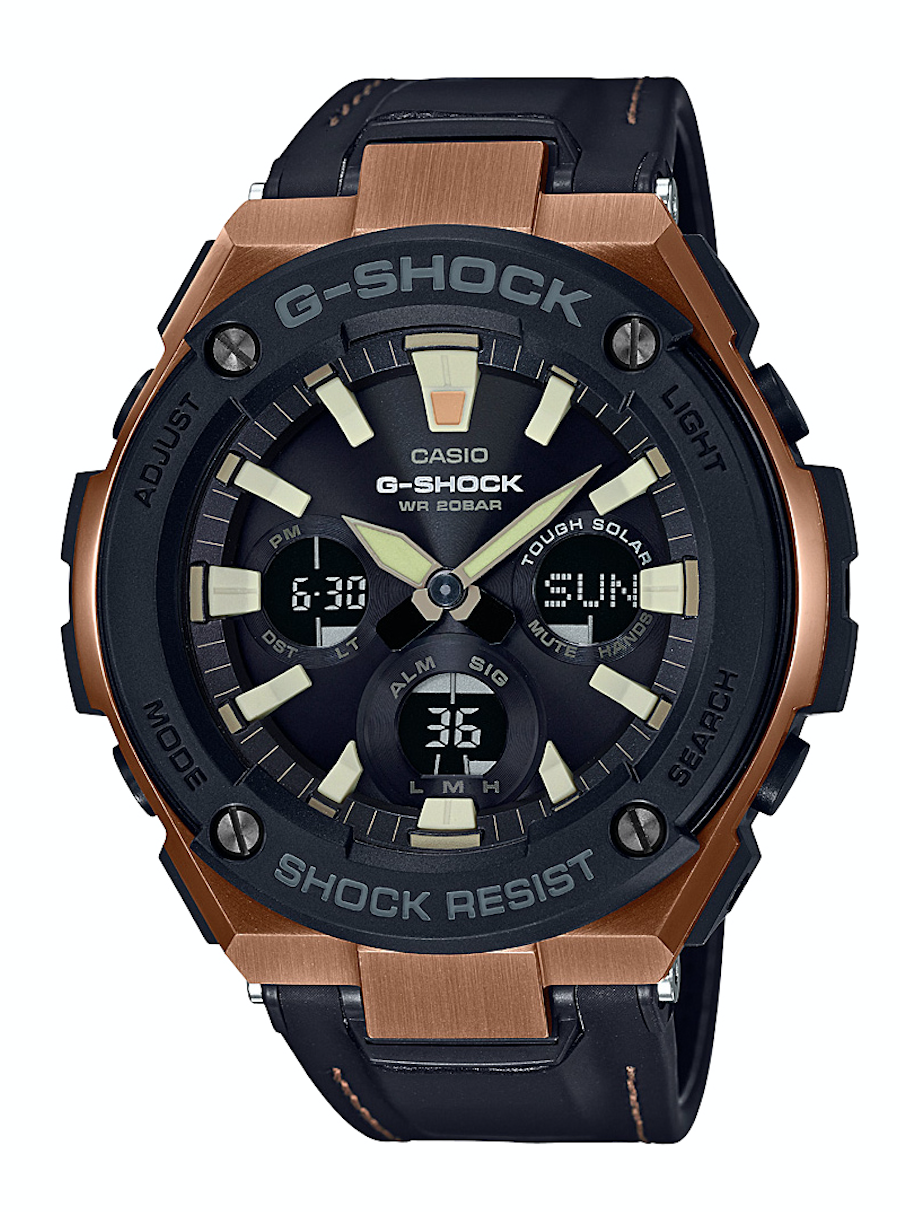 Por último, los modelos pertenecientes a la línea de G-Steel, se enfocan en un hombre con estilo casual y más juvenil. Desarrollados en acero inoxidable y resina, estos relojes cuentan con iluminación Neón, horas mundiales, alimentación solar, calendario automático y temporizador.
