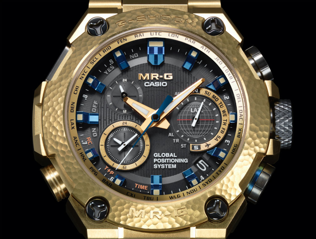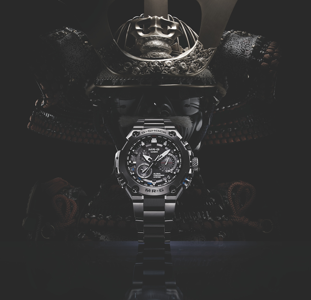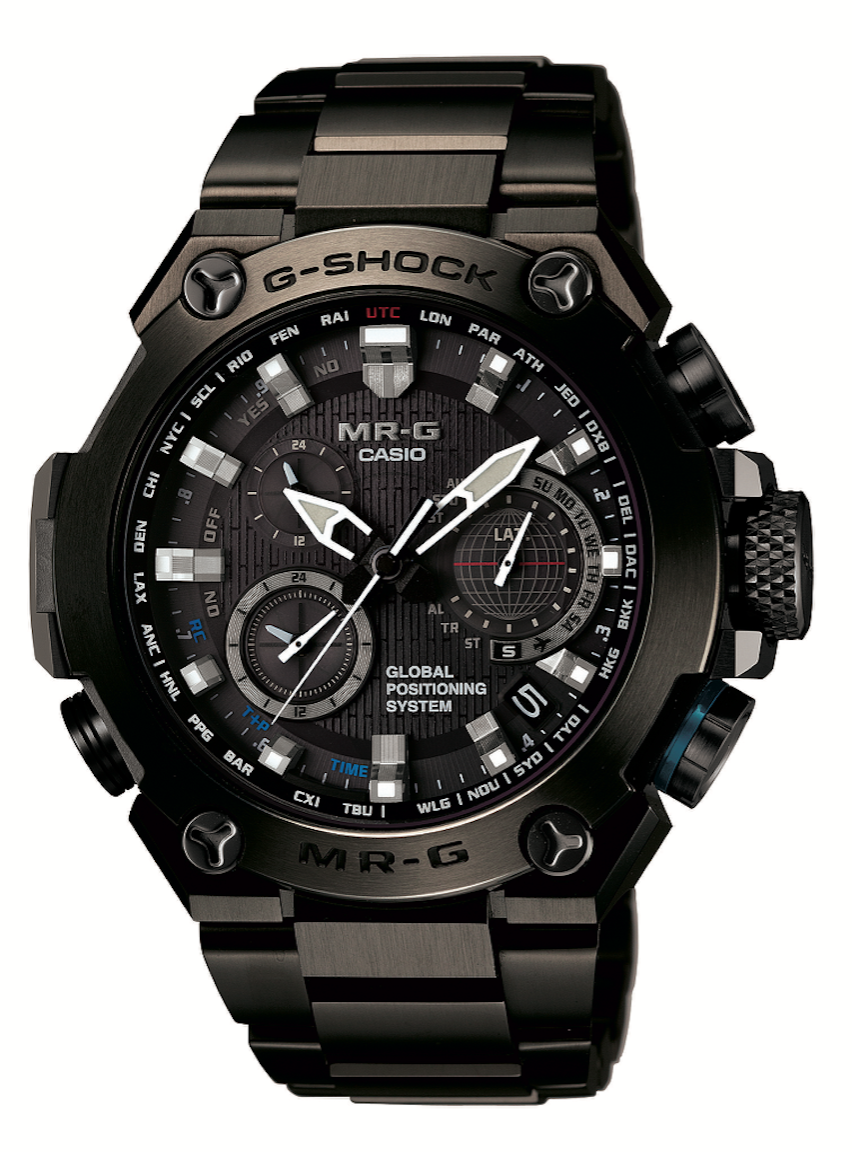 El majestuoso MR-G, ocupa la posición más alta de la colección al estar hecho de titanio con cristal de zafiro y revestimiento anti-reflejante. Elaborado para soportar los más altos impactos, este modelo cuenta con resistencia triple G y una hermeticidad de hasta 200m. Su extensible de acero inoxidable de triple pliegue, brindará la seguridad necesaria para las actividades más intrépidas.