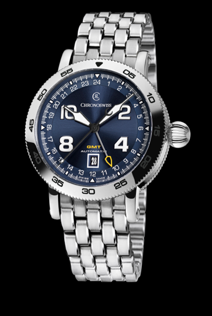 - CHRONOSWISS TIMEMASTER: caja de acero inoxidable, correa de caucho y carátula azul galvanizada.