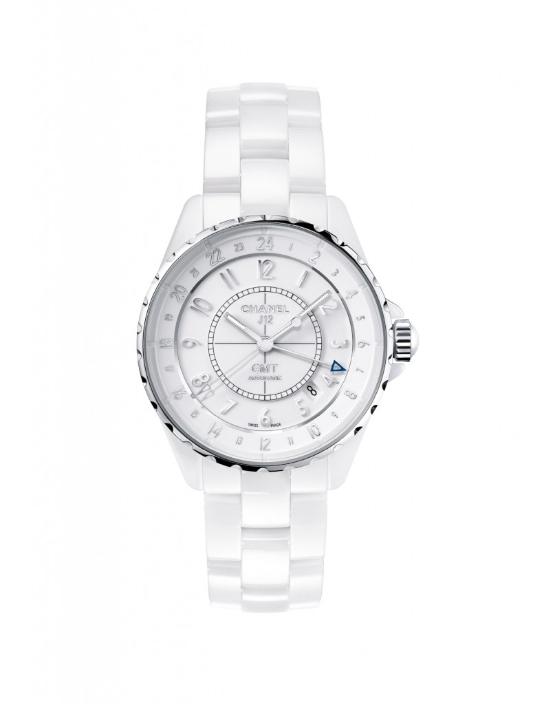 WW-VERANO 2012. La elegancia en el diseño y el savoir- faire de la casa parisina, se reflejan en la nueva pieza de Chanel. A la vez que acumula miradas de admiración a su paso y transpira glamour y sofisticación, el J12 GMT White -realizado en cerámica de alta tecnología- conserva su apariencia sin importar el paso del tiempo ni la actividad que se realice. La función GMT y un segundo huso horario, han sido añadidos a la serie en respuesta a las necesidades de la mujer actual.