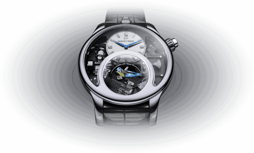 Entrando un poquito en la historia del famosísimo y prestigioso Charming Bird, que representa el punto más alto de la creatividad de Jaquet Droz, gracias a sus diversos aparejos ubicados en jaulas y, propuestos en mecanismos de “pistolas” que al accionarlas proponían al ave fuera del cañón para comenzar su canto.
