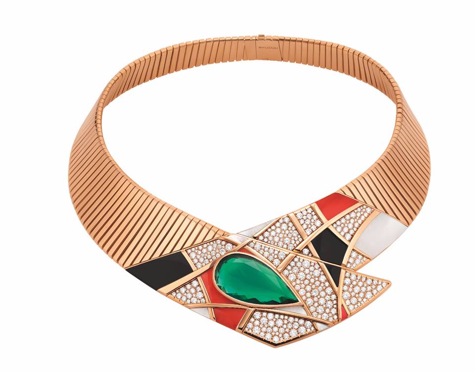 El savoir-faire de Bvlgari en gemas brillantes, evidente a través de la colección Cinemagia, destaca especialmente en tres fascinantes esmeraldas: una esmeralda octagonal corte step de 24.46 quilates en el Sautoir Emerald Affair, una esmeralda corte cabochon de 34.73 quilates en el Sautoir Gina, y una esmeralda corte cabochon de 24.31 quilates en el collar Forever Emeralds.