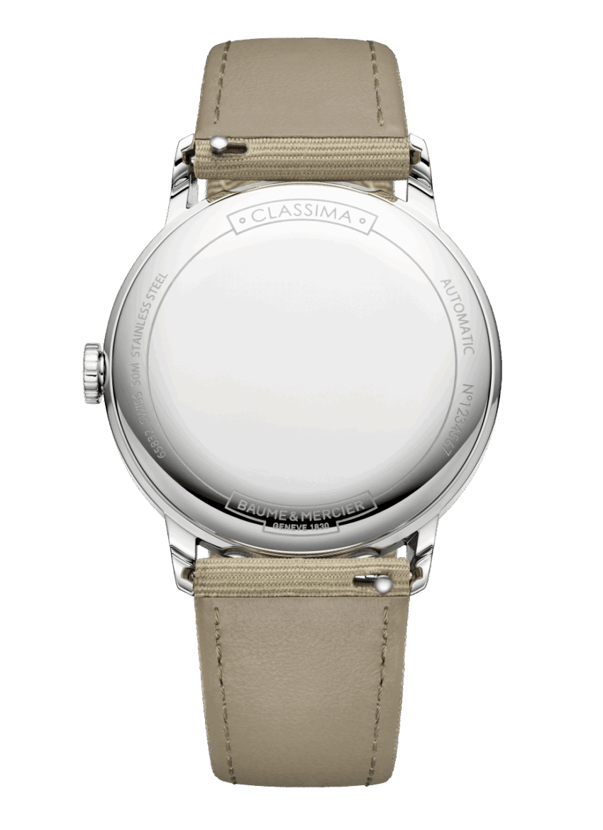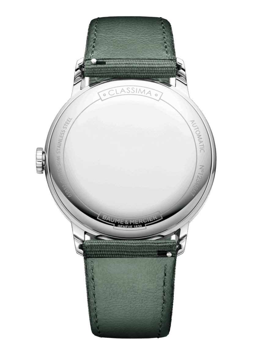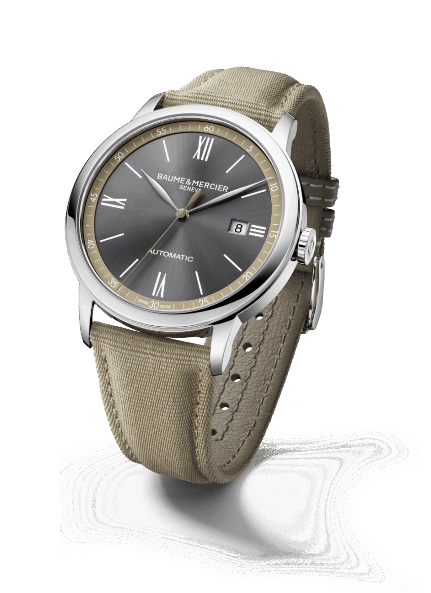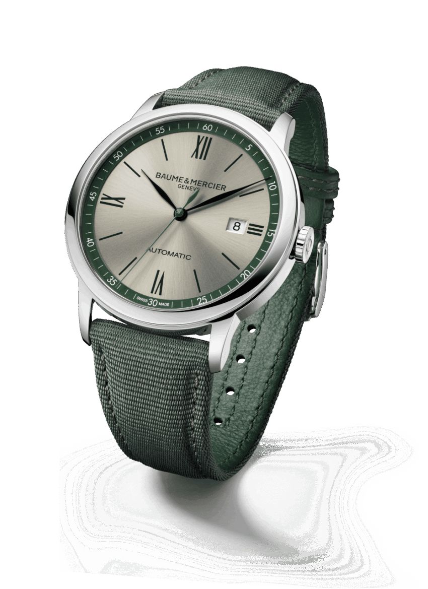 En Classima Baume & Mercier revisita los códigos “Streetstyle” desplegando un juego de materiales y matices que no pasan de moda. El caqui ocupa un lugar de honor, con una paleta versátil que va del beige arena al verde oliva y que le permite adaptarse a todos los estilos.