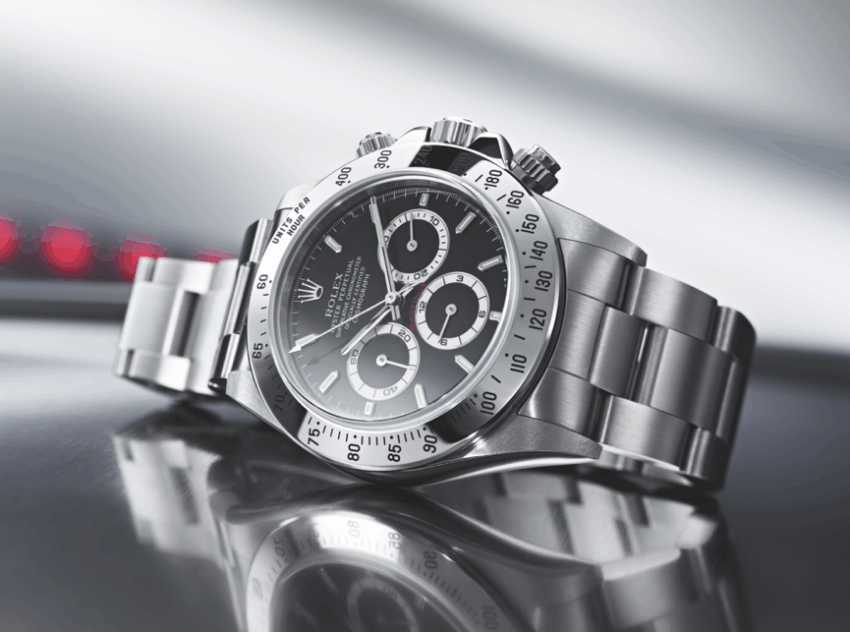 Generalmente, encontramos relojes con la escala de taquímetro impresa o grabada en el bisel. Tal es el caso del famoso Speedmaster de Omega o el Rolex Daytona.