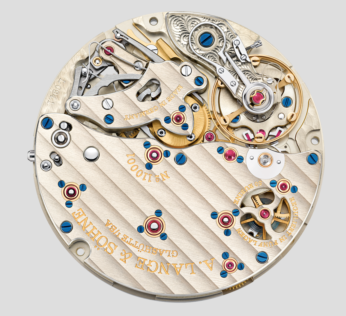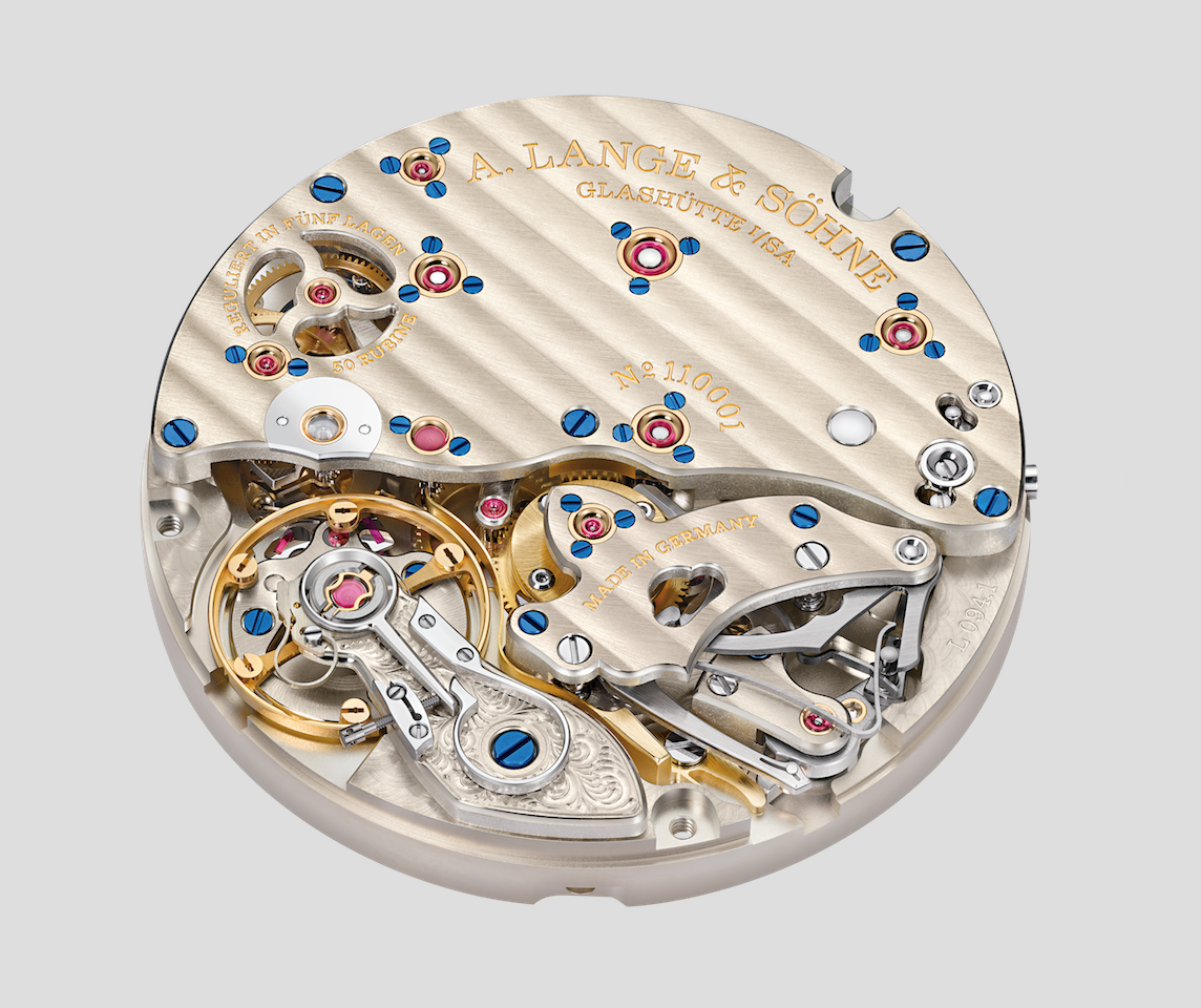A. Lange & Söhne es experto en cronometrar tiempos cortos, pues desde 1867, Ferdinand Adolph Lange desarrolló un mecanismo de aguja saltante que fue posteriormente patentada. Ahora, el segundero saltante –también conocido como seconde morte (segundero muerto)– es parte de las complicaciones más legendarias dentro de la Alta Relojería, y apreciada por los coleccionistas de la más alta estirpe.