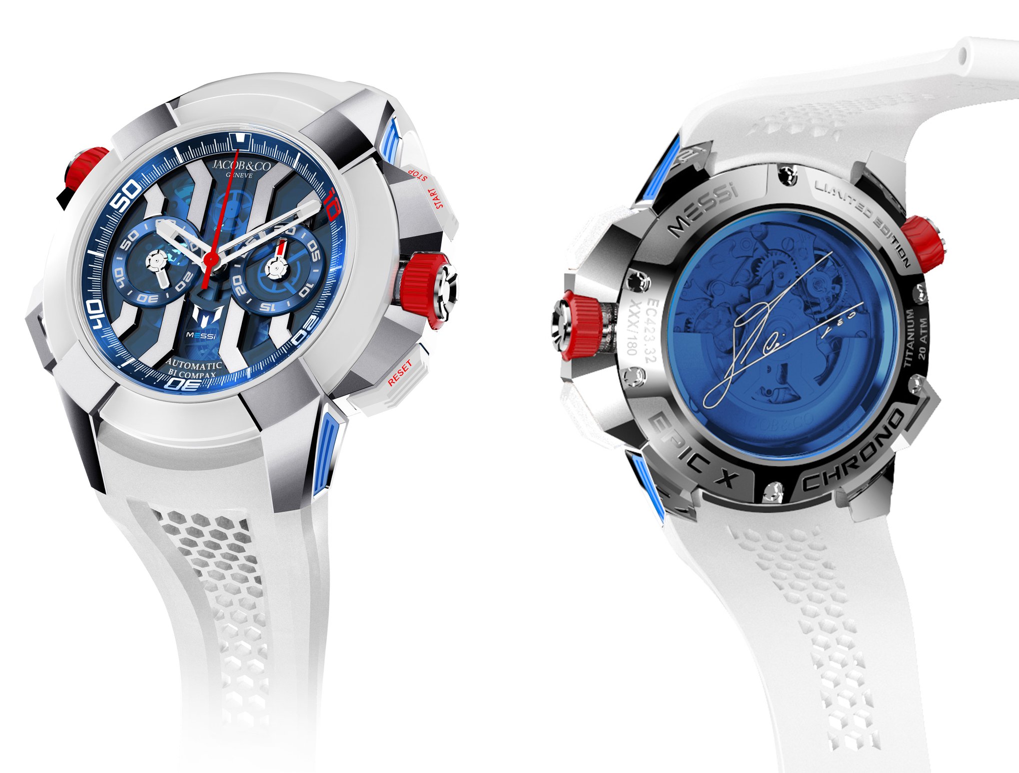 Dicho motor brinda una marcha excepcional a 4 Hz y continuará su trabajo durante una autonomía de 48 horas. El Epic X Chrono Messi marca el inicio de la asociación entre Jacob & Co y el futbolista, la cual inicia hoy y continuará por los siguientes 3 años.